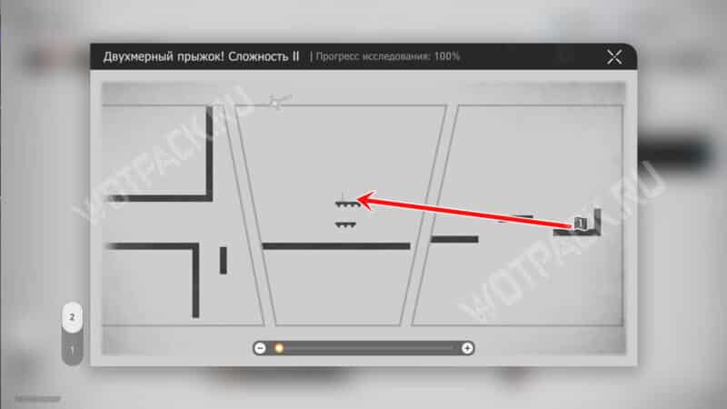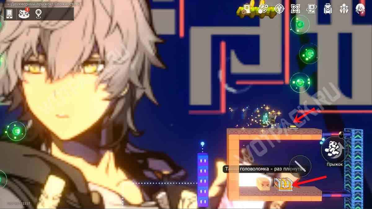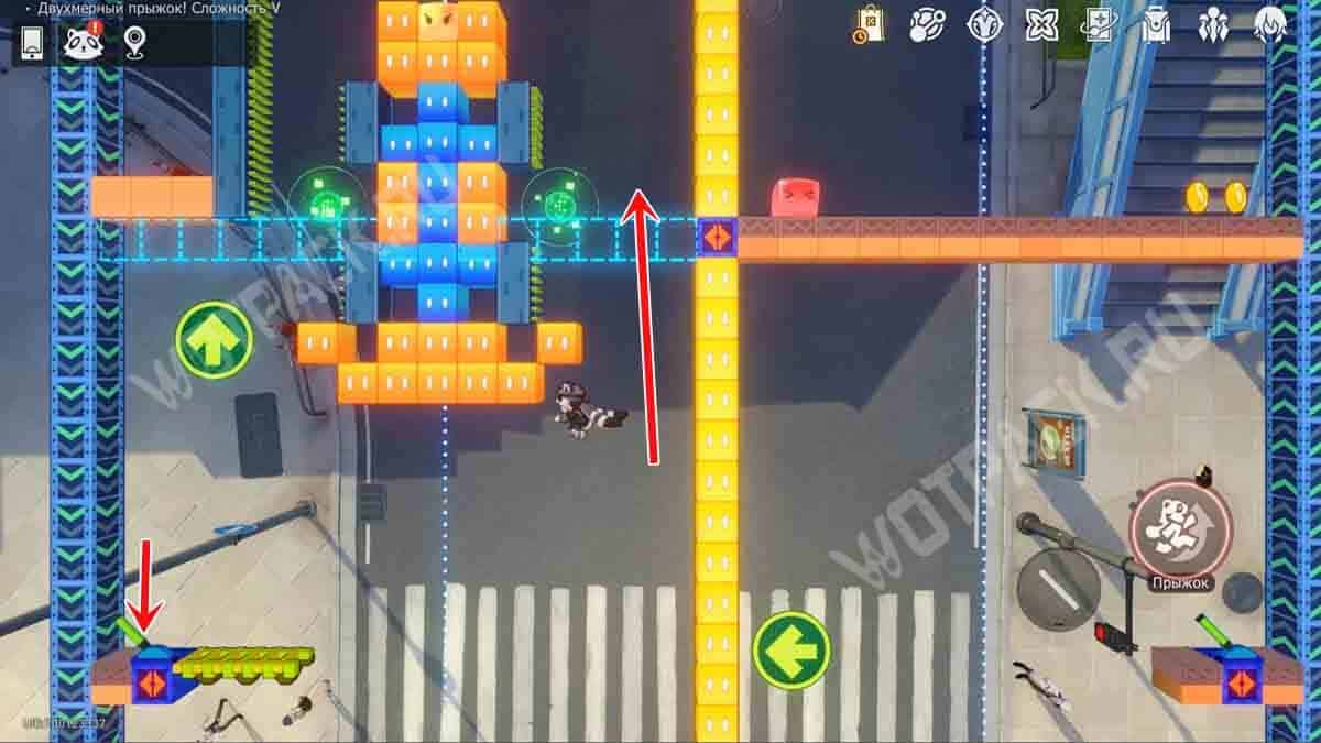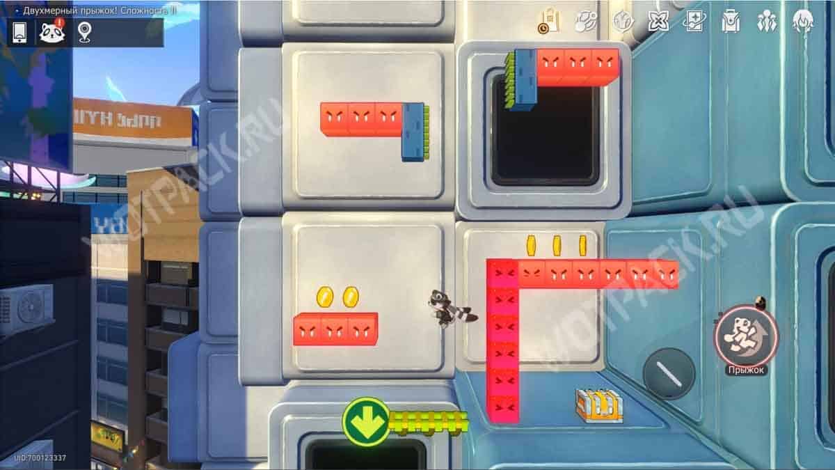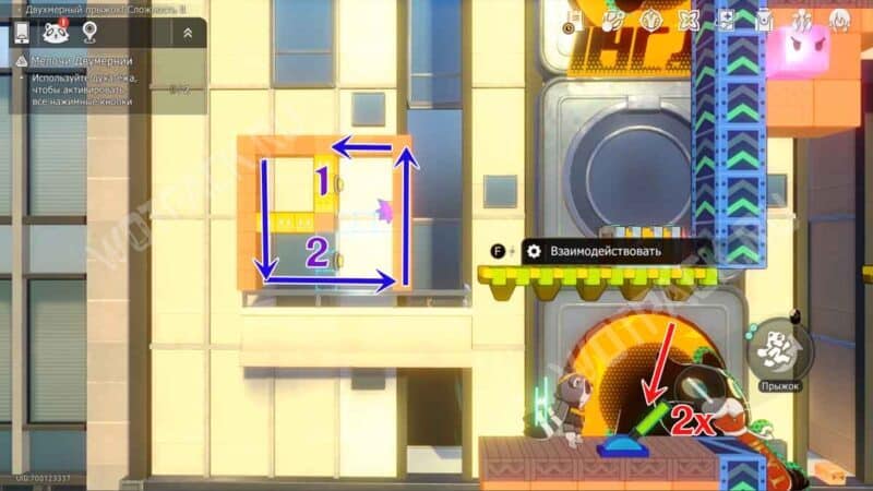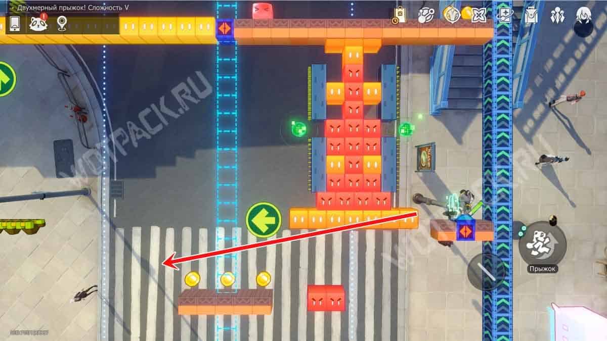 На белой колонне рядом с лавочкой зайдите в портал «Двухмерный прыжок! Сложность 2».