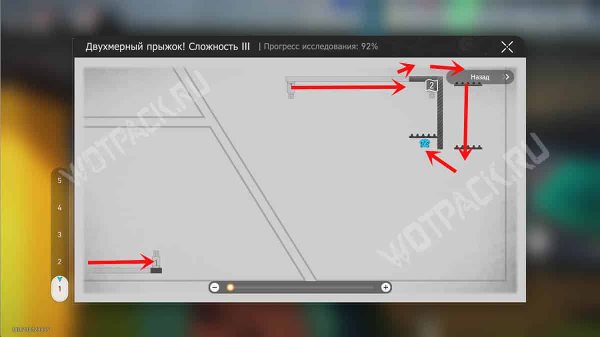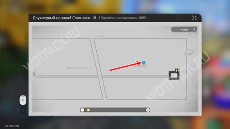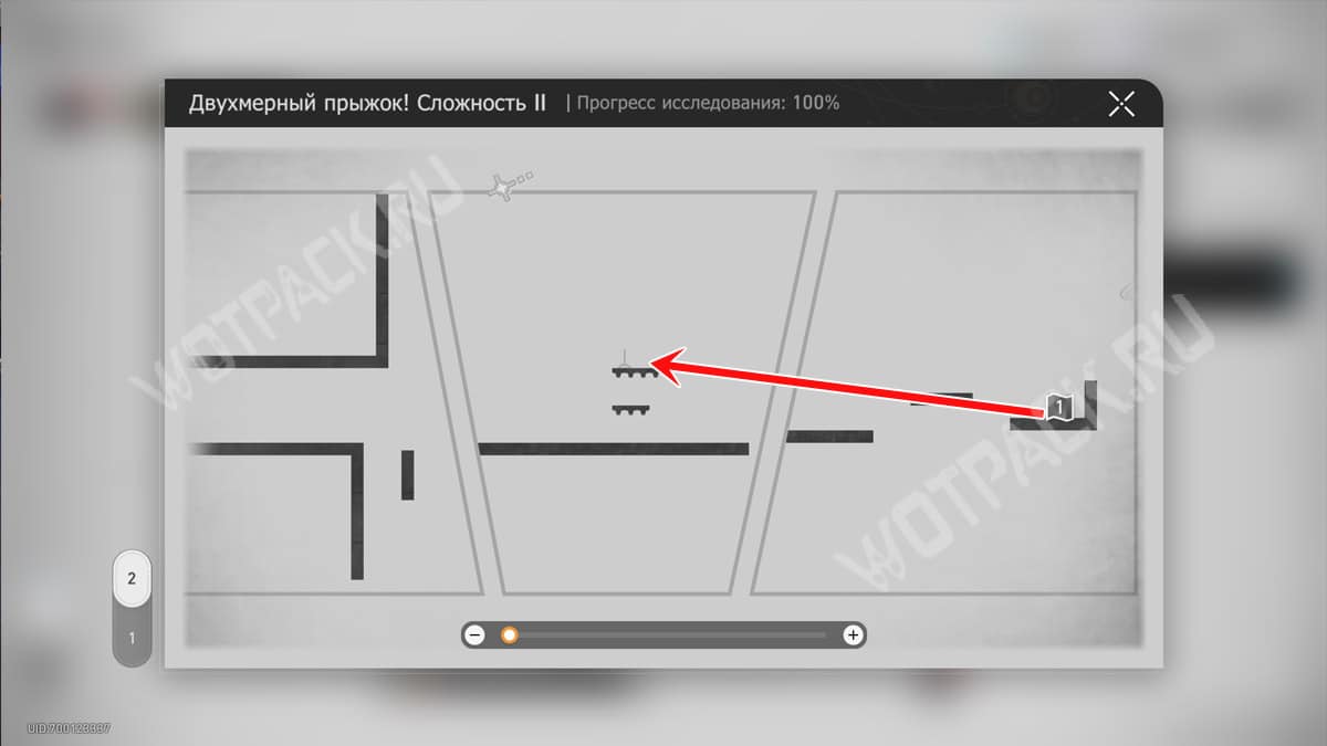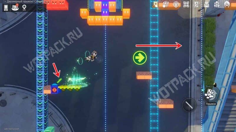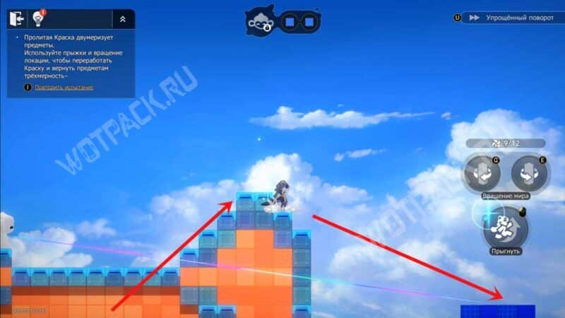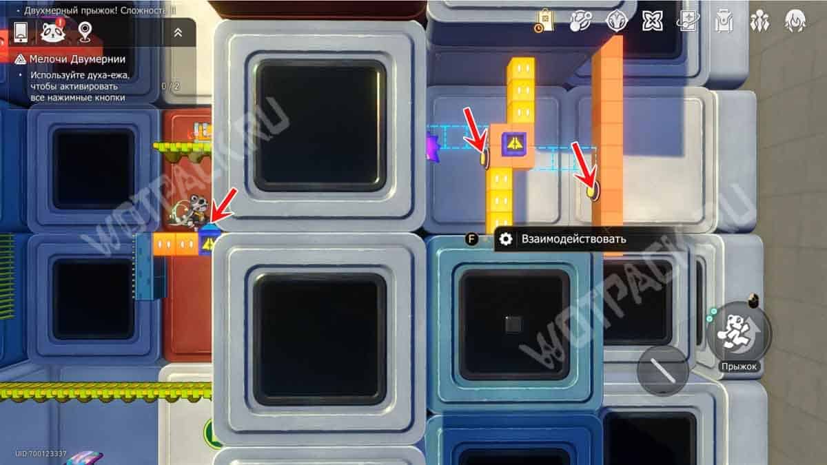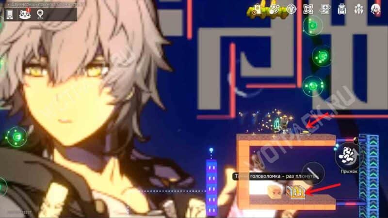 На белой колонне рядом с лавочкой зайдите в портал «Двухмерный прыжок! Сложность 2».