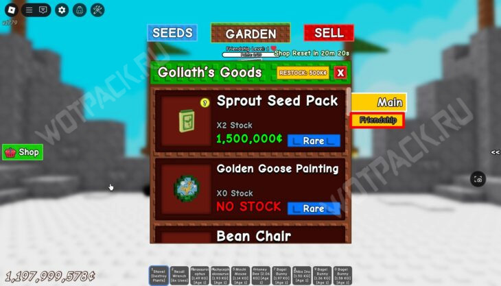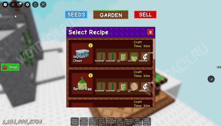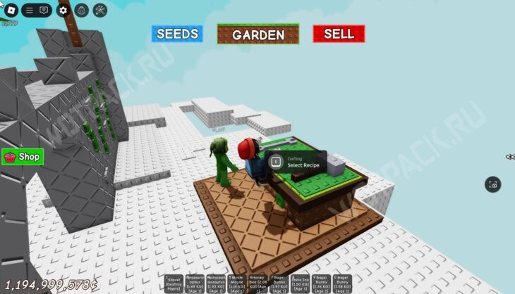 В режиме Вырасти сад в Роблокс Гороховое обновление предлагает фермерам сплотиться и помочь взрастить огромное бобовое дерево в центре карты. Отдавая сказочному Джеку подходящие фрукты, садоводы помогают растению взрослеть. Как шкала прогресса заполнится, все пользователи на сервере смогут забраться на верхушку, чтобы получить награды и закупиться в магазине.