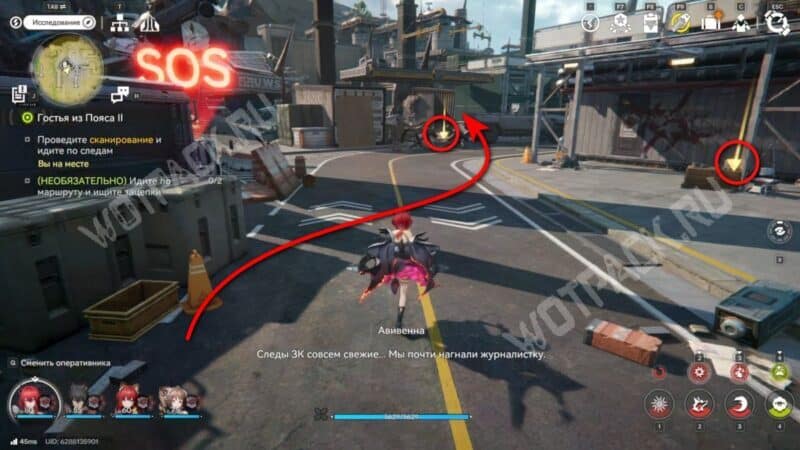 Для поиска злоумышленников воспользуйтесь сканером, доступным на круглую кнопку в правой части экрана. Следуйте по маршруту и осматривайте улики, продвигаясь к северной части транспортного нексуса.