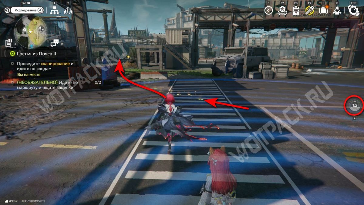 Для поиска злоумышленников воспользуйтесь сканером, доступным на круглую кнопку в правой части экрана. Следуйте по маршруту и осматривайте улики, продвигаясь к северной части транспортного нексуса.