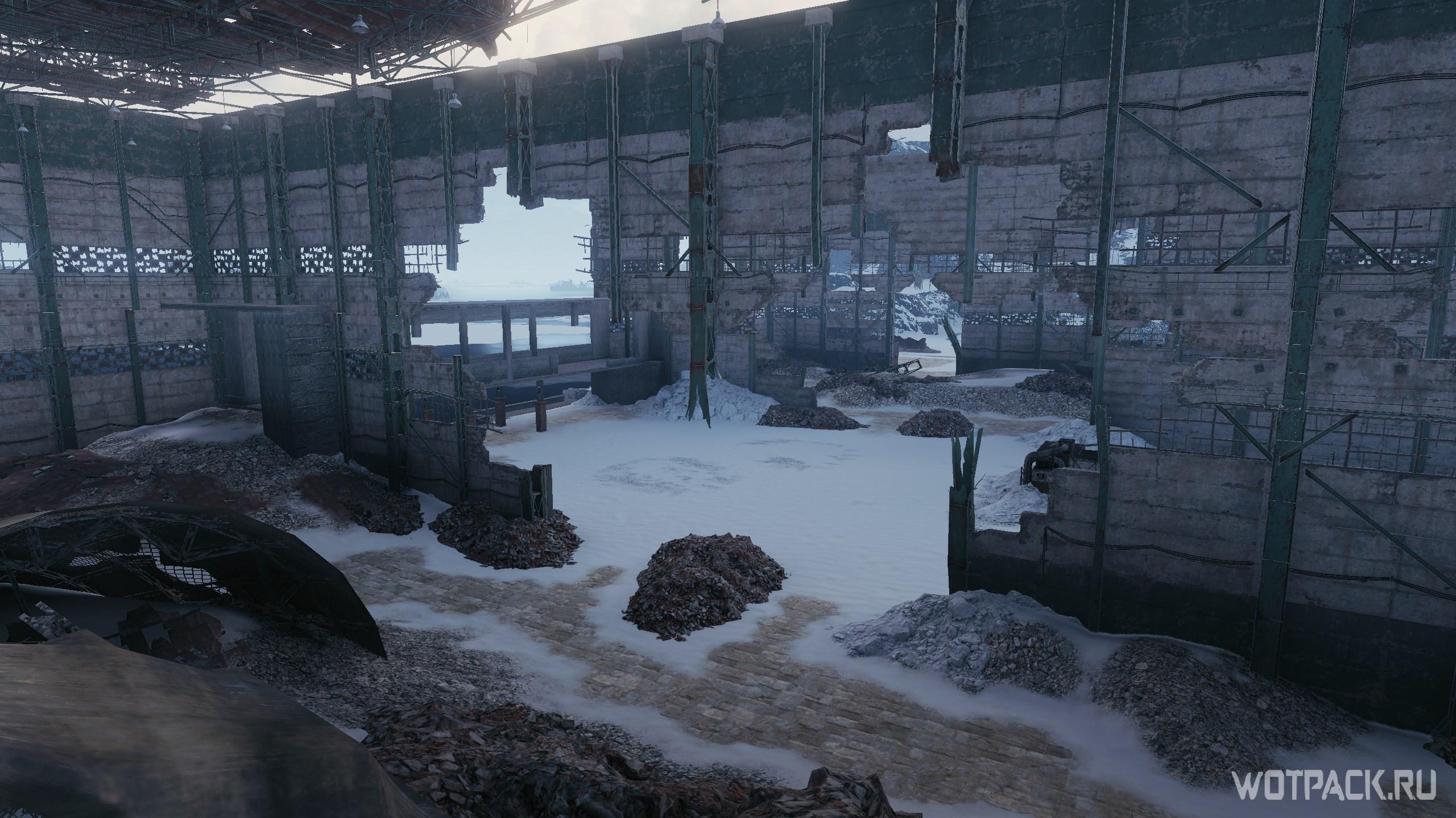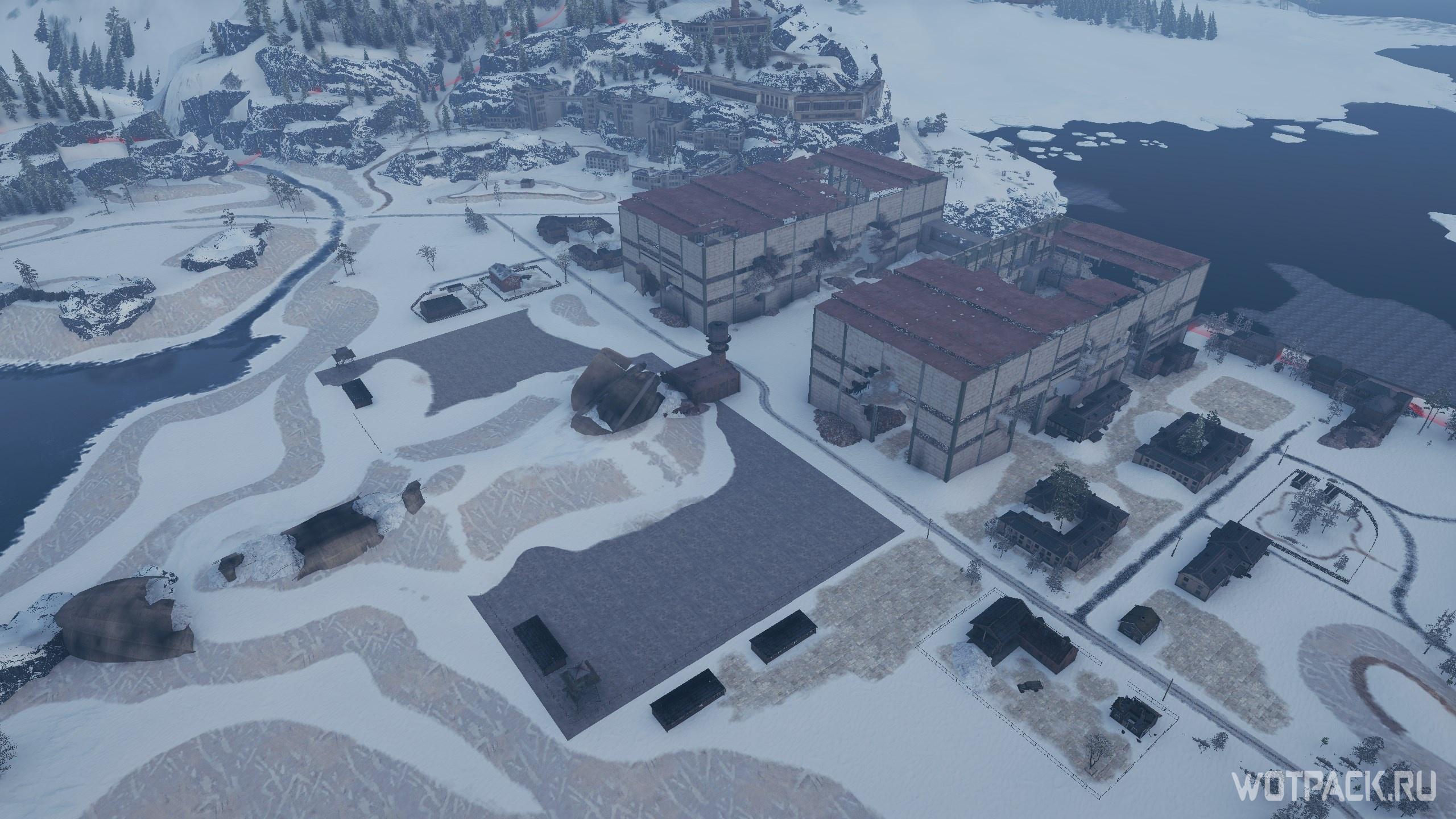 Новая зимняя локация размером 1000х1000 по традиции стала отзеркаливает уже имеющиеся в игре: визуально карта напоминает Лассвиль (те же 2 основных направления и вода посередине), Промзону с ее ангарами, железно-дорожный мост над рекой из Лайв Окс, и конечно же Редшир с его дирижаблем.