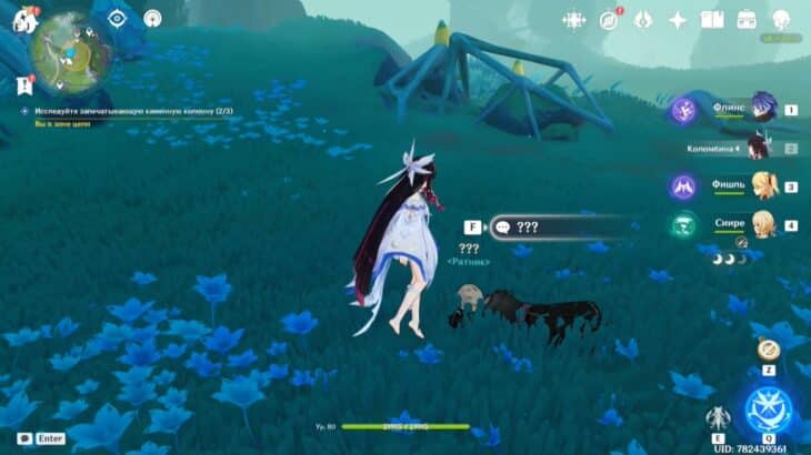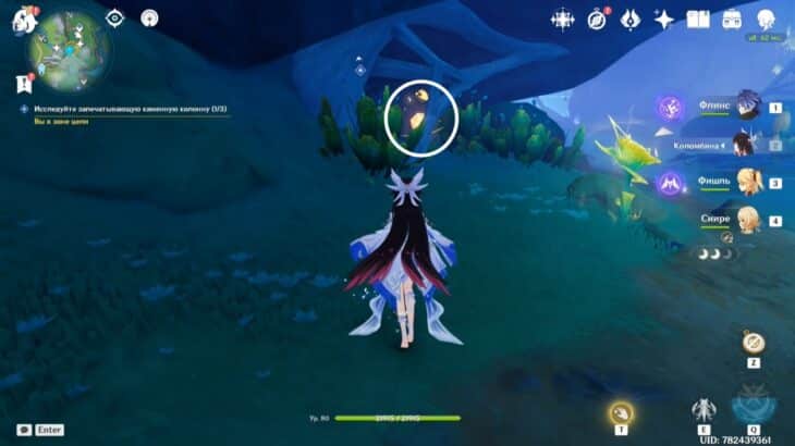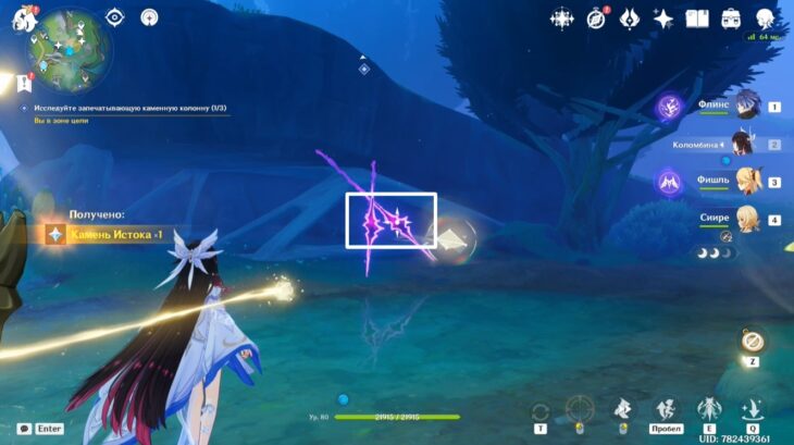На этом этапе некоторые игроки сталкиваются с багом — шпилецвет неактивен или его нельзя взять. Выйдите из игры, воспользовавшись меню Паймон, и снова зайдите. Тогда проблема должна решиться.