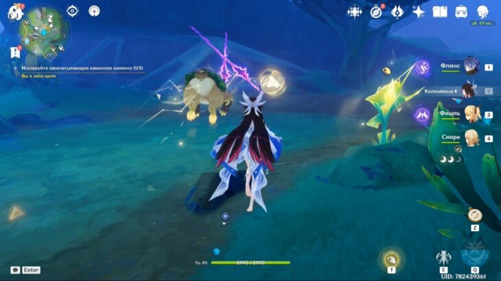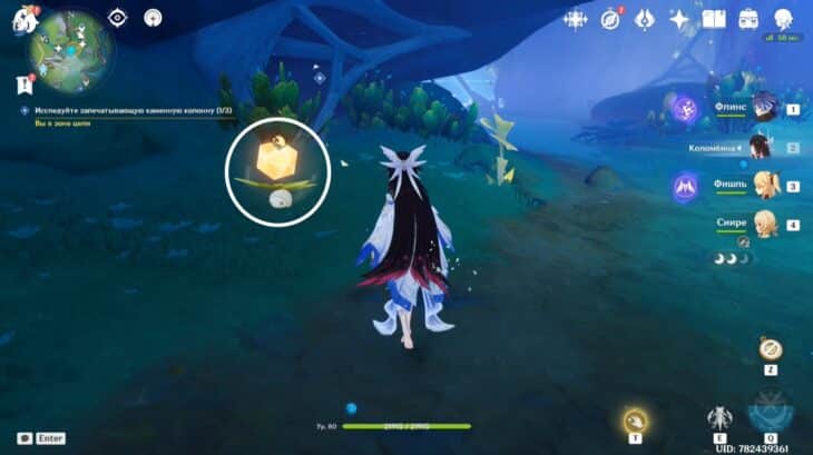Направляйтесь к следующему столбу, расположенному в восточной стороне. На пути встретите враждебно настроенный отряд Фатуи. Одолейте врагов и заберите один из Лунокулов области.