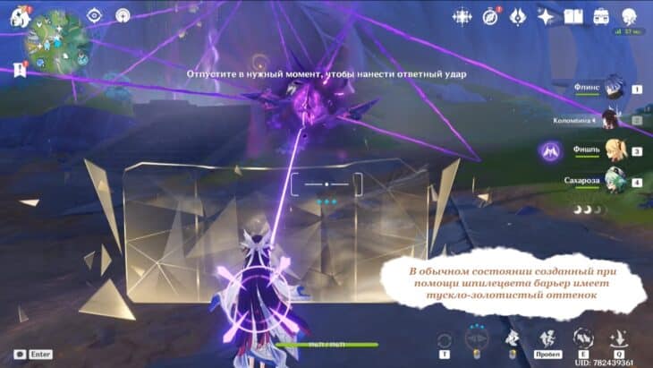 Воспользуйтесь особенностями местности, чтобы одолеть врага, — для этого направьте Т-умение на шпилецвет. Теперь при долгом нажатии (по умолчанию «ЛКМ») будете создавать щит перед собой, с его помощью можно отразить вражеские снаряды.