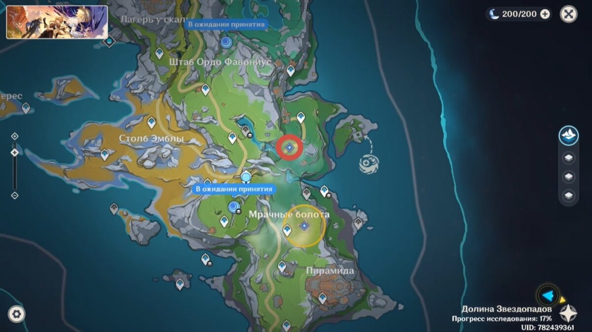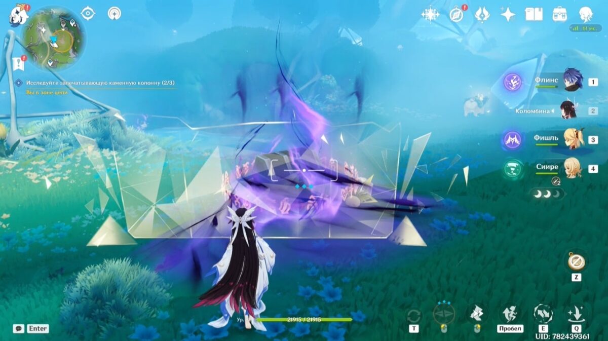 На этом этапе некоторые игроки сталкиваются с багом — шпилецвет неактивен или его нельзя взять. Выйдите из игры, воспользовавшись меню Паймон, и снова зайдите. Тогда проблема должна решиться.