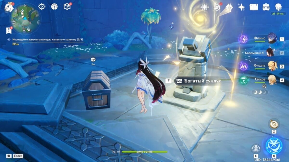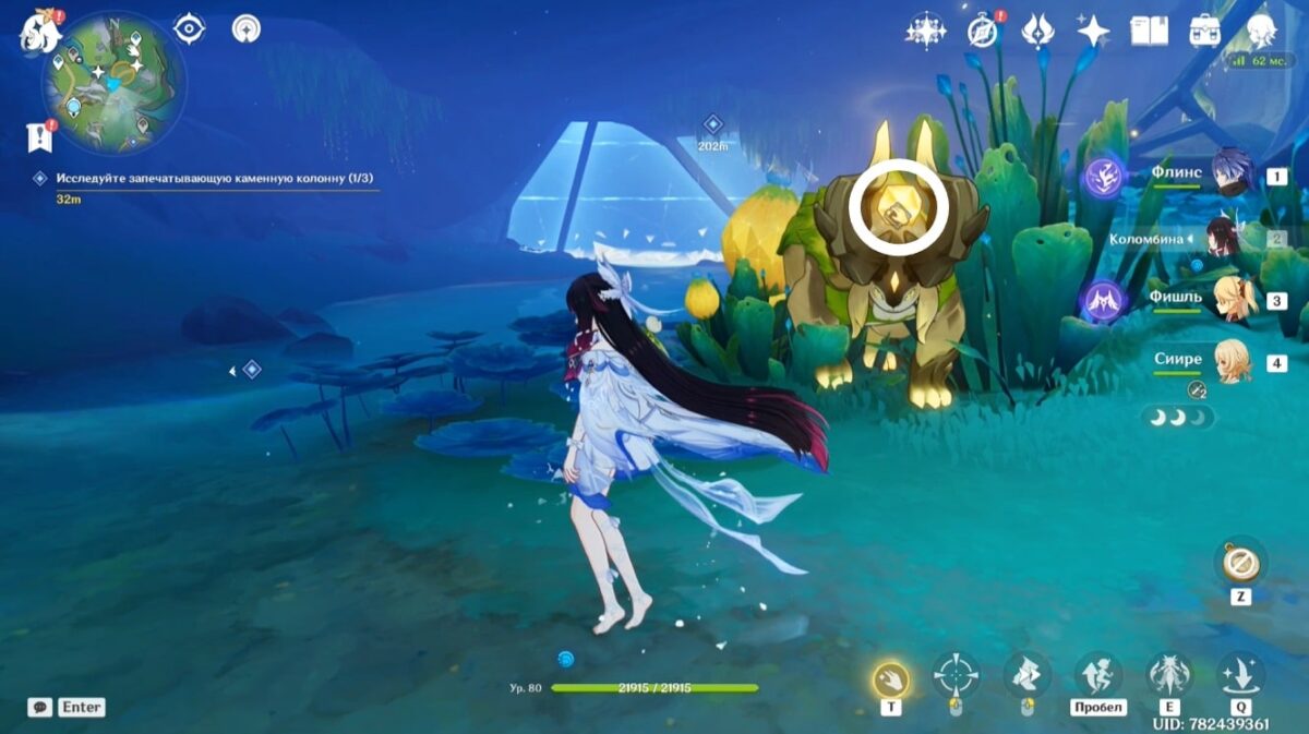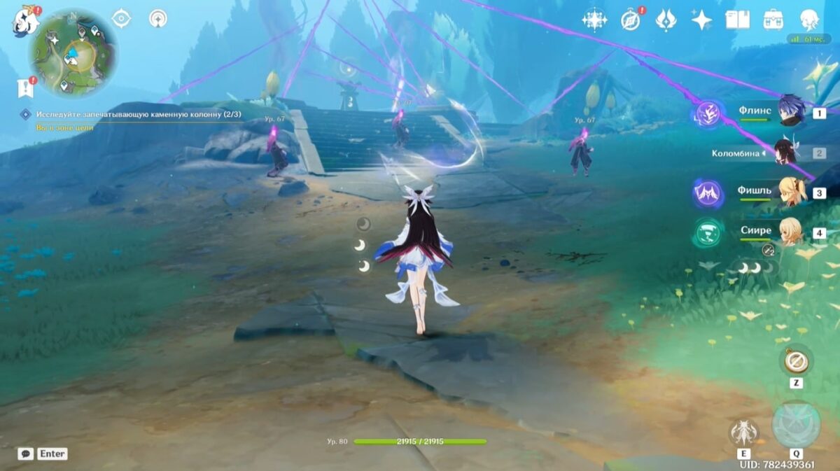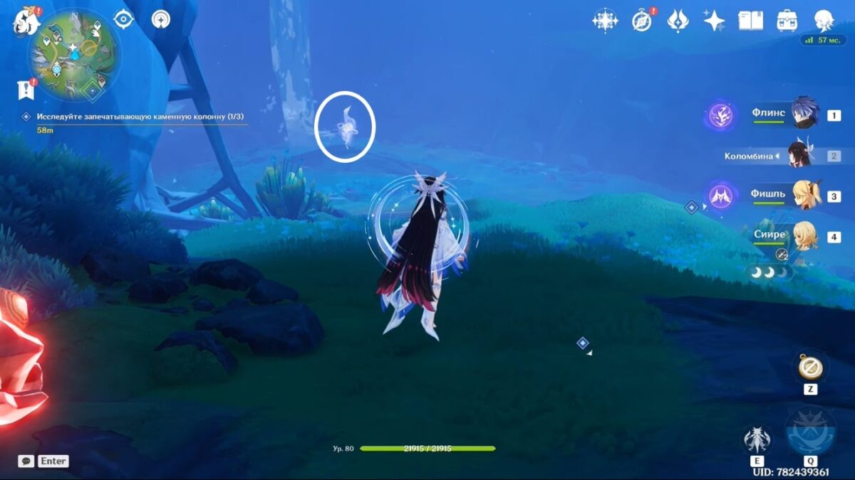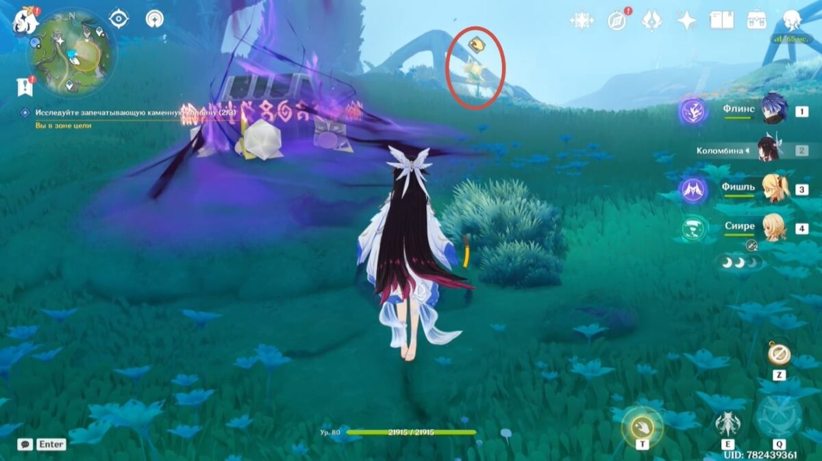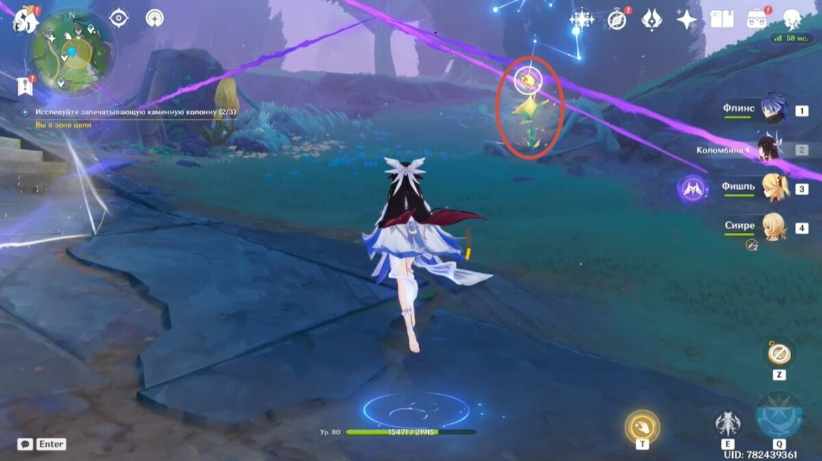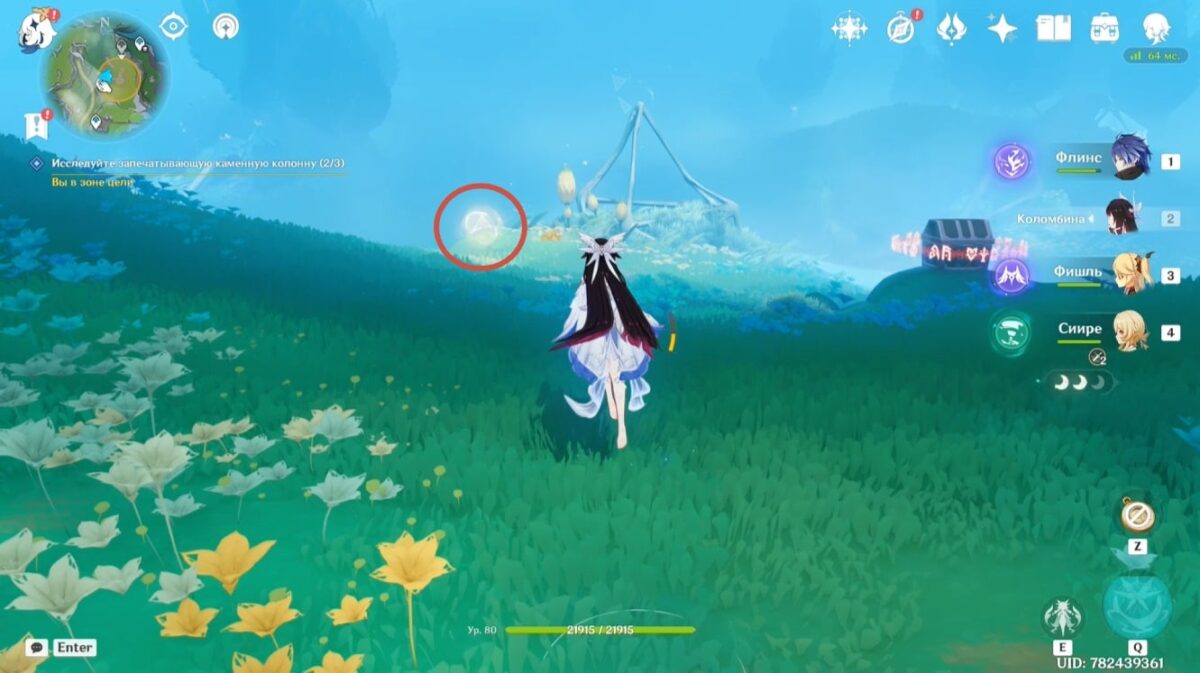 Направляйтесь к следующему столбу, расположенному в восточной стороне. На пути встретите враждебно настроенный отряд Фатуи. Одолейте врагов и заберите один из Лунокулов области.