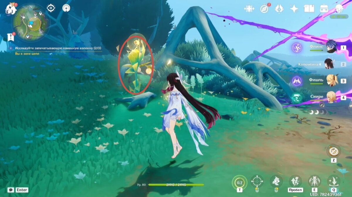 После активируйте чистый поток энергии, который умчится в направлении древней колонны. Проход «закроется» линиями разлома — разрушьте их навыком от шпилецвета.