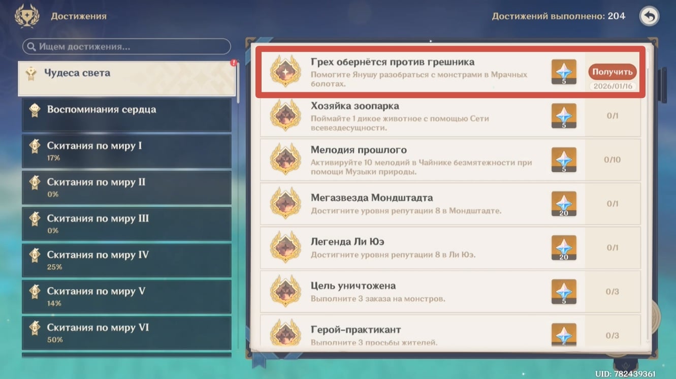 Помогите Янушу разобраться с монстрами в Мрачных болотах, решив все головоломки с алтарями. За это получите памятный трофей «Грех обернётся против грешника» и сможете забрать 5 камней истока из раздела «Чудеса света».