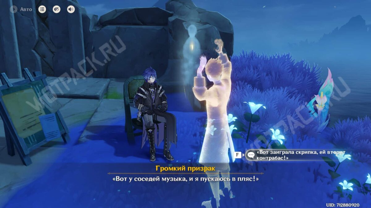 Никакого поощрения за данную скрытую загадку о громком призраке не предусмотрено в Геншин Импакт. Когда сядете на его место после диалога за Кирилла, HP активного героя больше не будет опускаться.