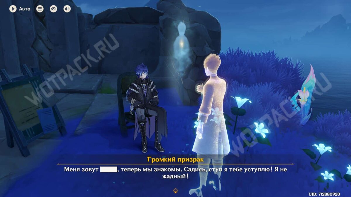 Никакого поощрения за данную скрытую загадку о громком призраке не предусмотрено в Геншин Импакт. Когда сядете на его место после диалога за Кирилла, HP активного героя больше не будет опускаться.