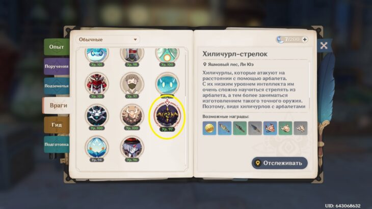 - Наконечники стрел выбиваются из хиличурлов-стрелков.