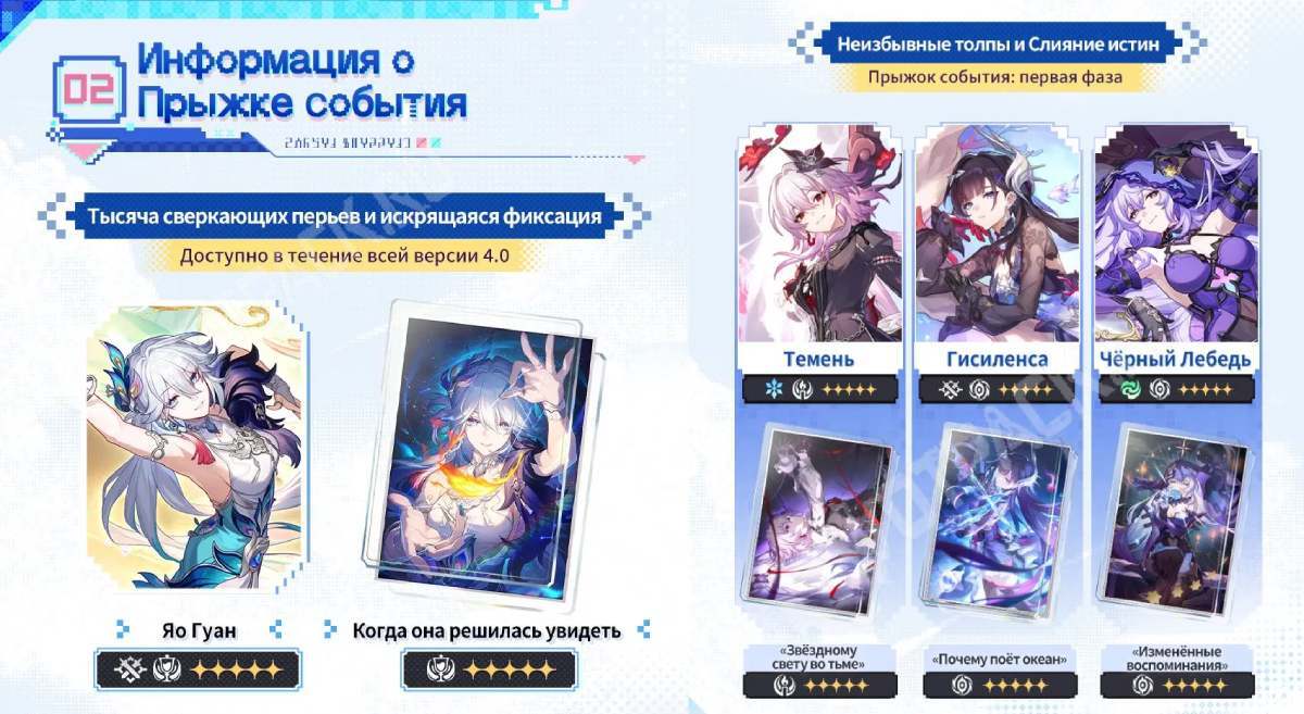 С релизом планеты станут доступны баннеры Яо Гуан (Радость: Физический) и её сигнатурки «Когда она решилась увидеть» (Радость). Эти прыжки персонажа и светового конуса продлятся всю версию, вплоть до начала 4.1.