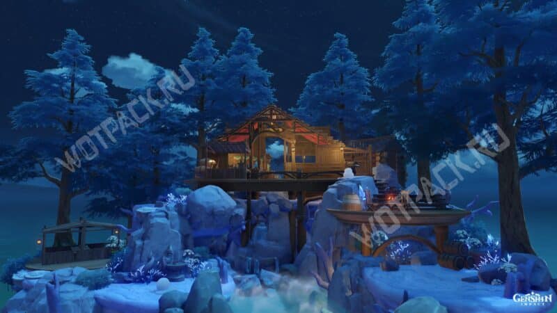 В инадзумском дизайне фигурирует главно здание Инадзумы, озеро для рыбы и горячий источник. Здесь можно представить себя настоящим жителем Элекро королевства.