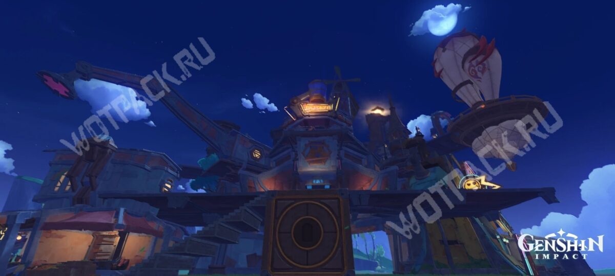 Довольно необычный вариант использования забора. Главное здание Мондштадта в окружении пальм смотрится немного странно, но дизайн выглядит интересно.
