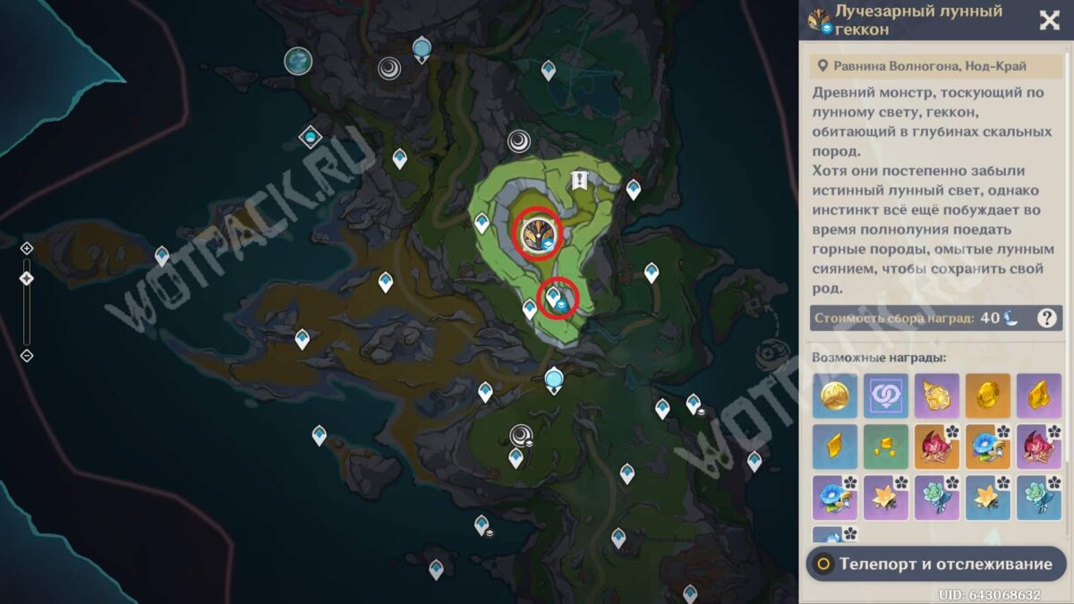 Bos itu tinggal di sebuah gua besar yang tersembunyi di dalam Dataran Volnogon di Nod-Kray, antara Markas Besar Ordo Favonius dan Patung Archon. Mulailah perjalanan Anda menuju Radiant Moon Gecko dengan menggunakan salah satu teleporter aktif di dekatnya. Berlarilah ke air terjun, di baliknya terdapat lorong kecil.