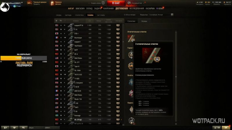 WolfHeart смог в одиночку, без помощи взвода и «охраны» от других игроков взять за 104 боя 3 отметки и еще 41 бой потребовался для получения 100%. При этом процент побед действительно впечатляет – 81%. Средний урон составил 6547 единиц.