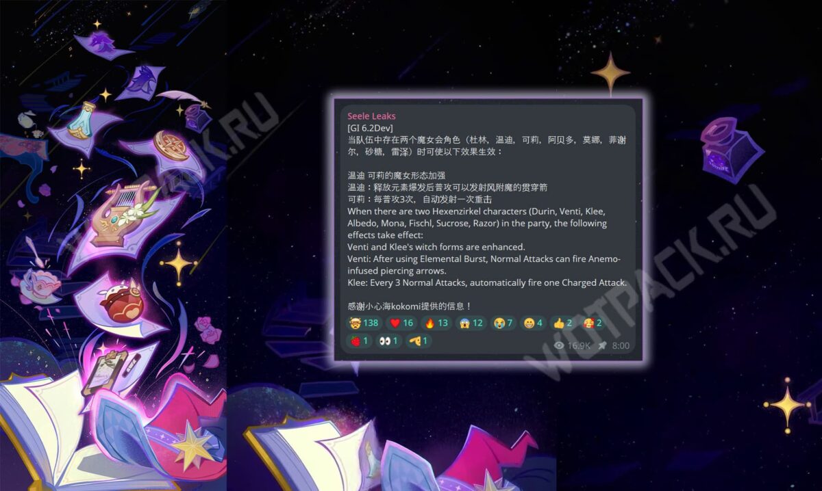 На официальных каналах Genshin Impact был опубликован тизер «Предзнаменование волшебства», сопровождаемый картинкой с символами нескольких героев, связанных с Шабашем ведьм: