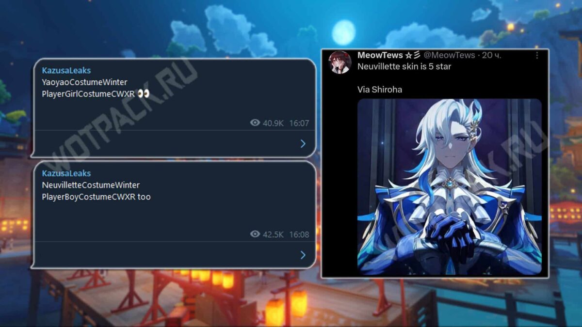 - Второй предназначен для судьи Невиллета, ранее о нем сообщали HXG_Diluc, Seele, TeamMew и другие надежные источники. Shiroha уточнил, что наряд будет иметь 5⭐ редкость, однако это заявление не было подтверждено другими инсайдерами.
