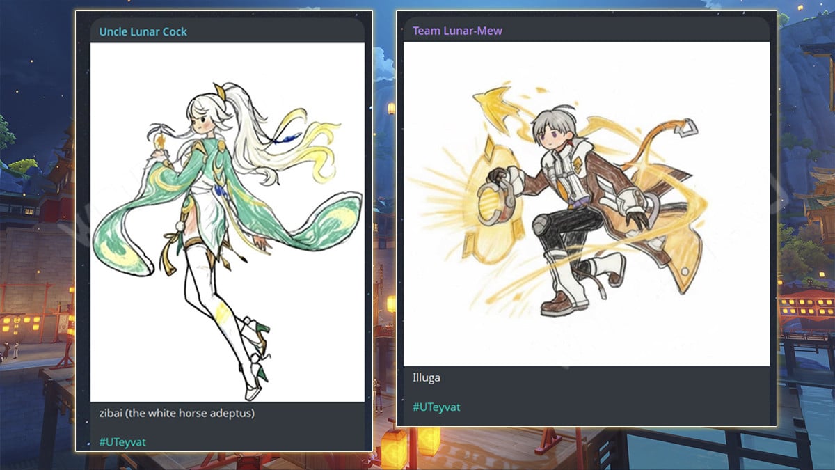 UTeyvat опубликовал сгенерированные нейросетью скетчи Адепта по имени Цзы Бай (Гео, одноручное) и Иллуги из Нод-Края. Как следует из картинки, Белая Лошадь является взрослой девушкой с высокой моделью. По словам инсайдера, её внешность напоминает генерала Фэйсяо, но без лисьих черт.