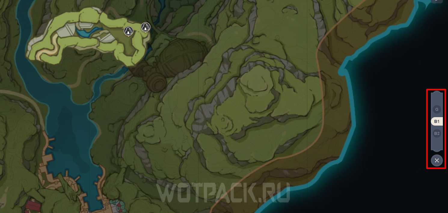 Пользуясь многоуровневой картой, обратите внимание на список, находящийся справа. С его помощью можно переключаться между «ярусами» локации: опуститься еще ниже, либо же перейти в обычный режим карты для просмотра маркеров на поверхности.
