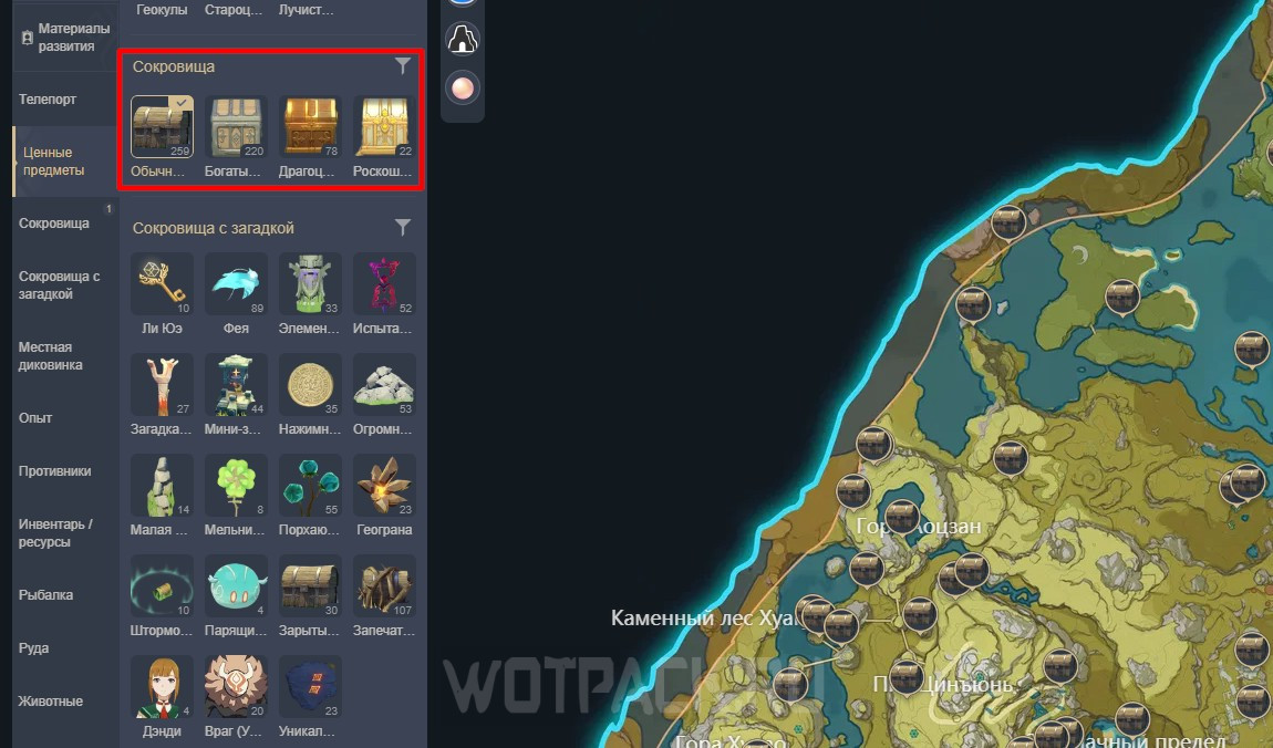 Интерактивная карта Долины Чэньюй в Genshin Impact