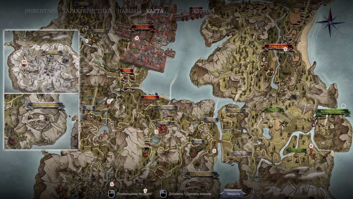 В миссии «Настоящий картограф» придётся обойти 11 точек обзора и разблокировать области на схеме, чтобы пользоваться инструментом на клавишу «M». Последний регион открывается лишь в третьей главе, потому что до этого момента вход в Шахты будет закрыт.