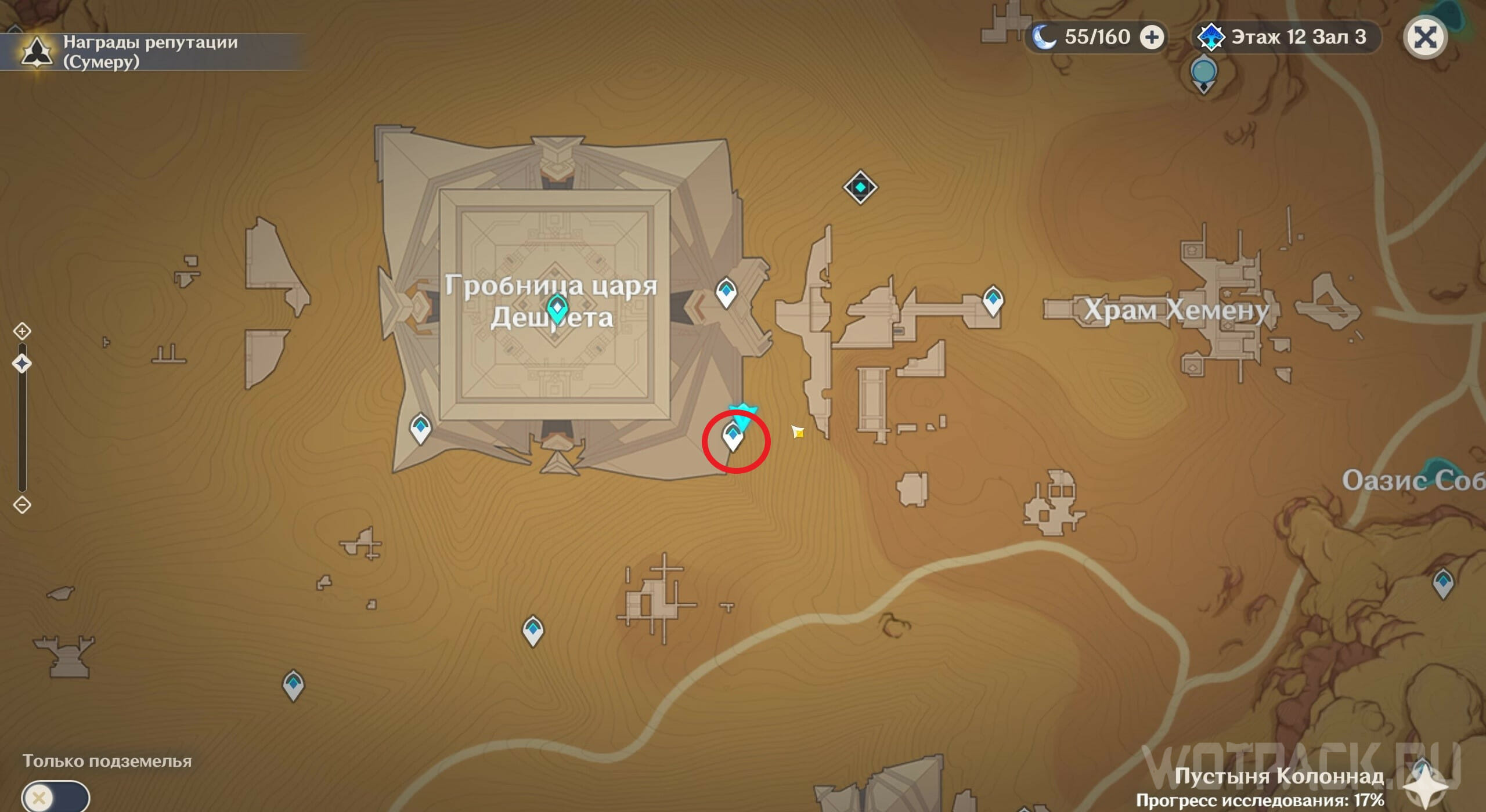Начинайте от телепорта в субрегионе Хадж-нисут. По четырехлистным символам переместитесь к вратам огромной пирамиды и откройте вход в нее Плитой красных песков.