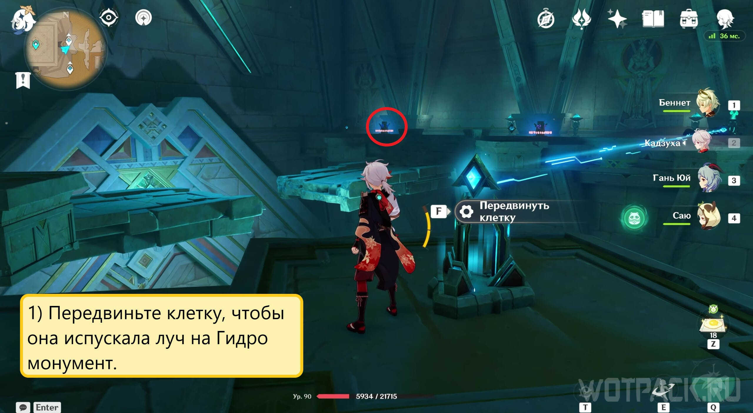 - Переместить 2 клетки слева обширного зала по направлению к Гидро монументам на противоположной стороне (см. фото).