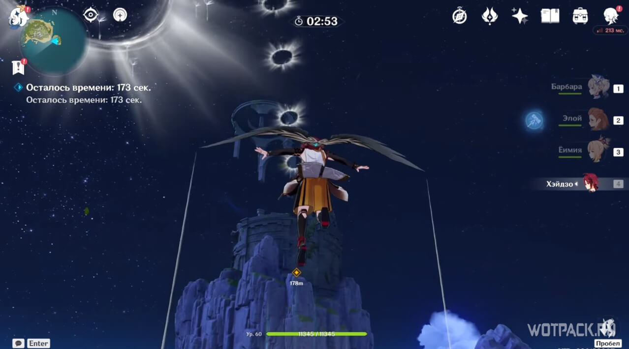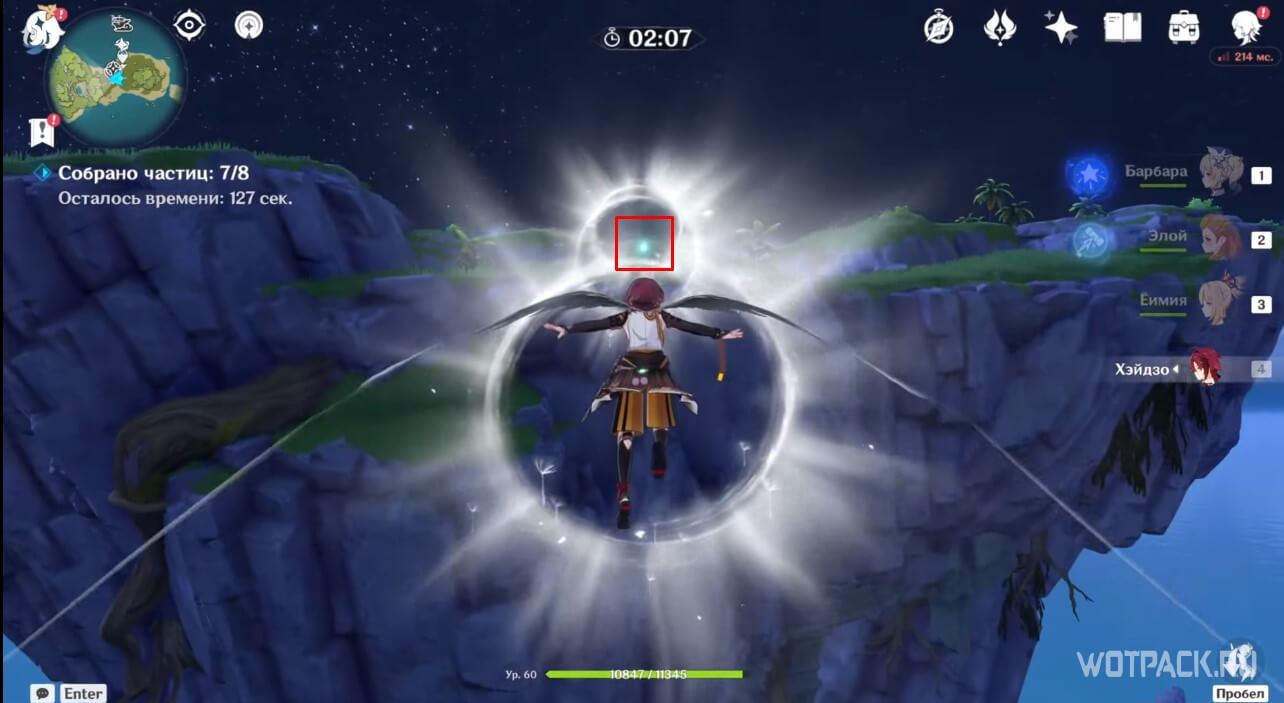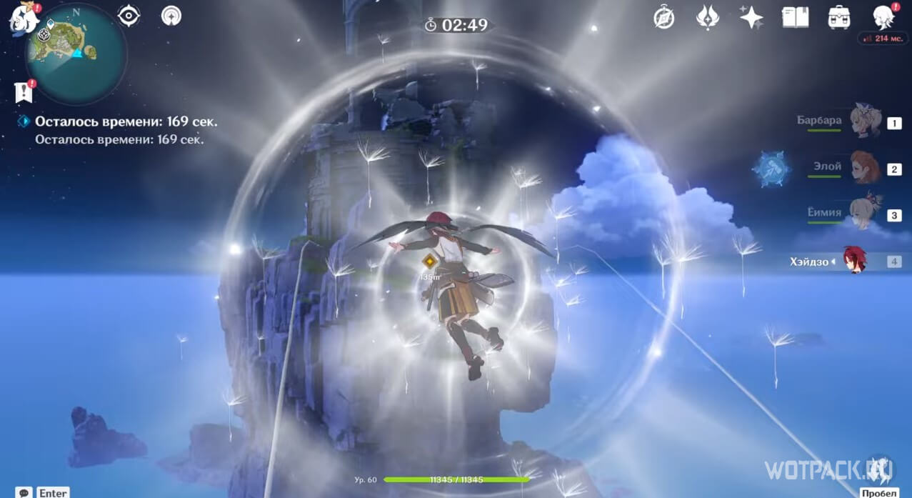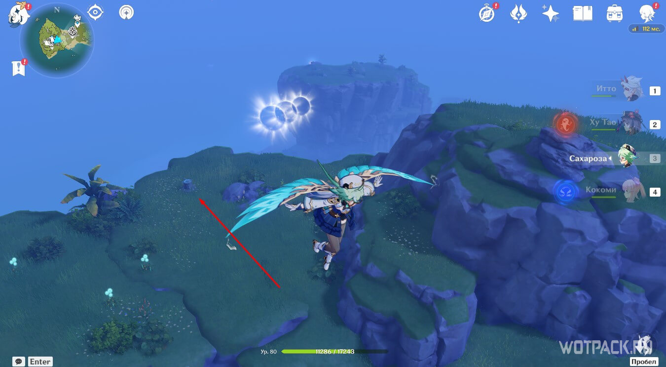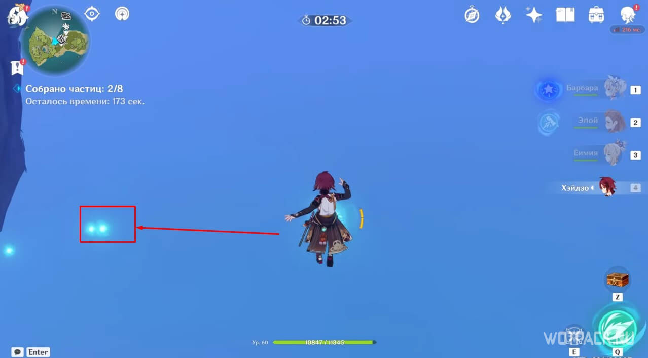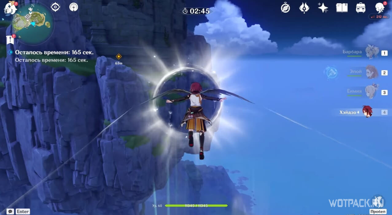 Подберите первую Анемо частицу, а затем активируйте мельничный механизм, стоящий рядом с ней. Поднимитесь по ветряному потоку, а после пикируйте ко второй частичке.