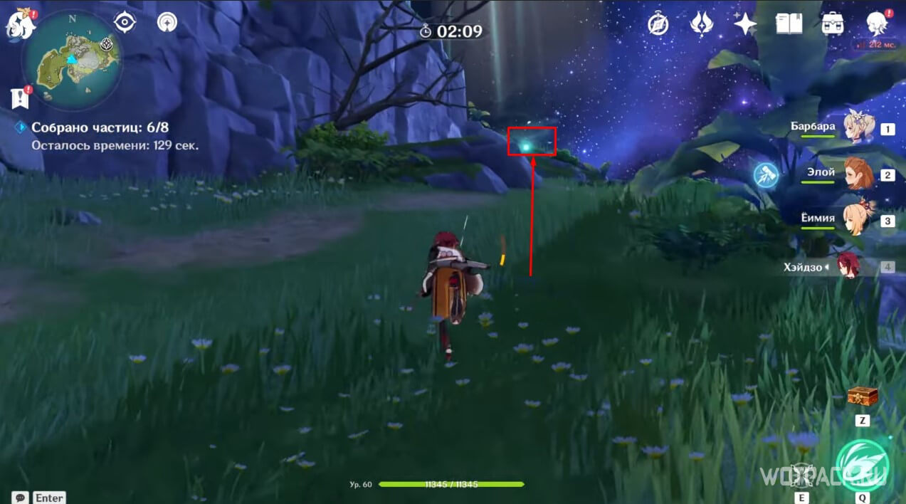 За следующей частицей идите в гору, а затем взлетите к последней, находящейся на каменном выступе. В награду за успешное выполнение выдается обычный сундук.