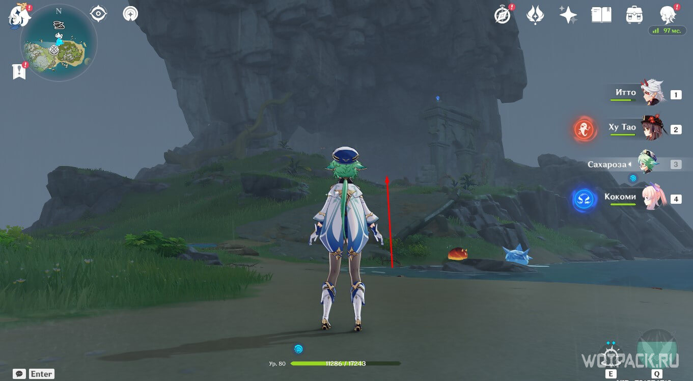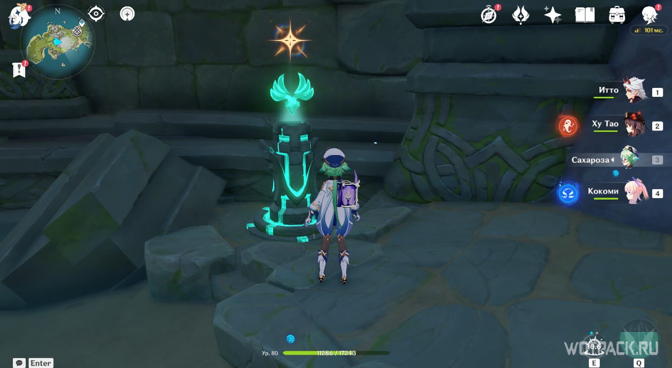 Для активации монумента на мистической версии переместитесь на выделенную точку телепортации, а затем пройдите в пространство под горой. Спуститесь в углубление и активируйте Анемо монумент при помощи навыка или атаки, заряженных элементом Анемо.