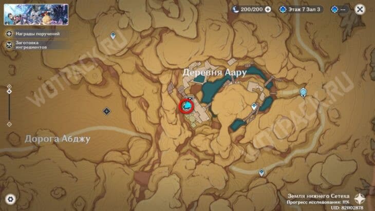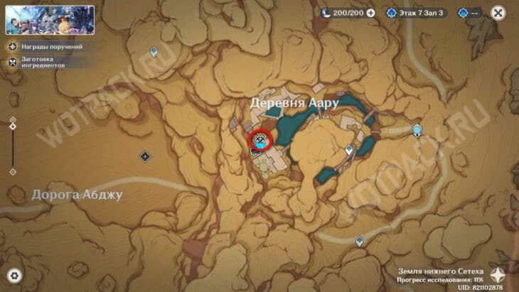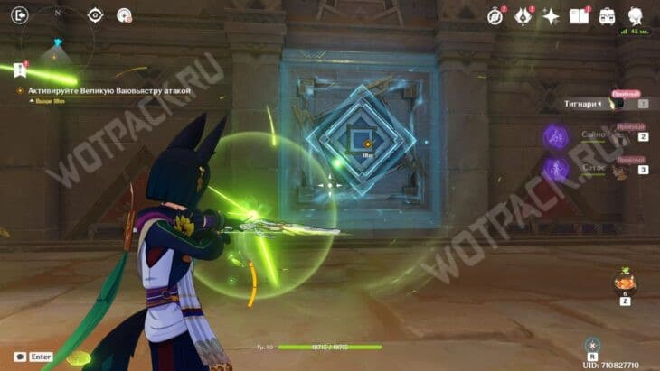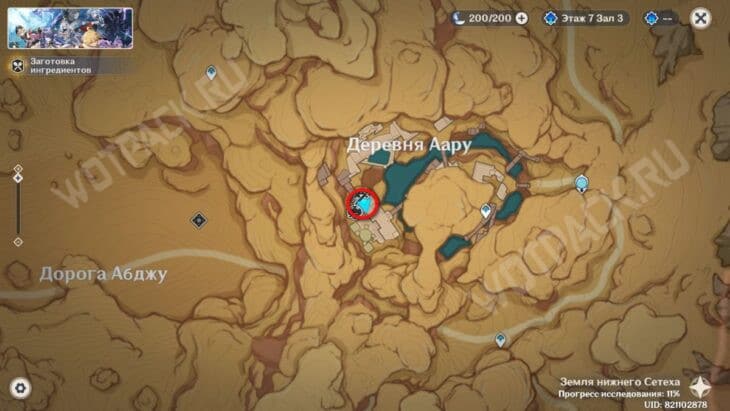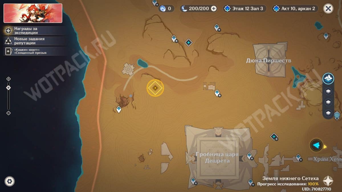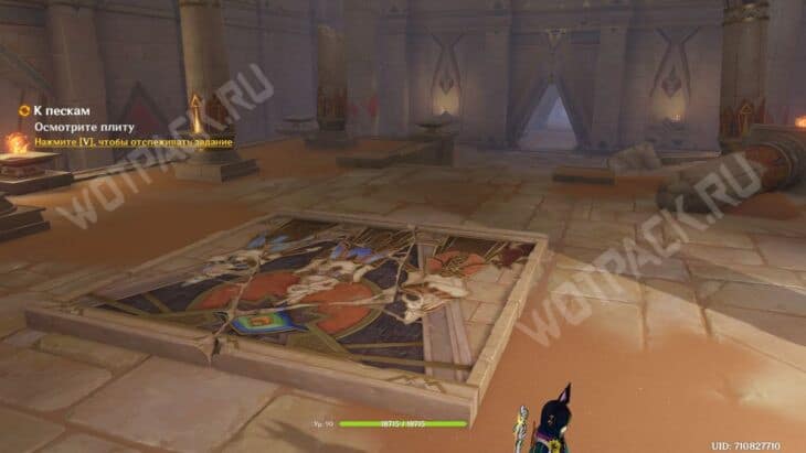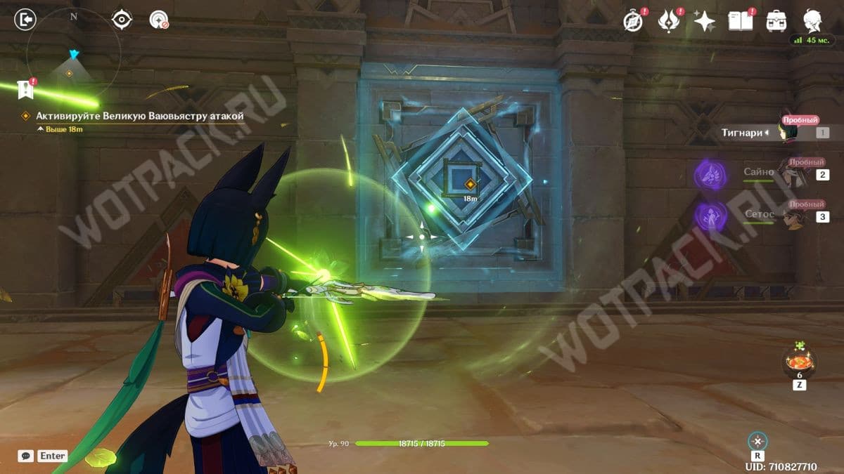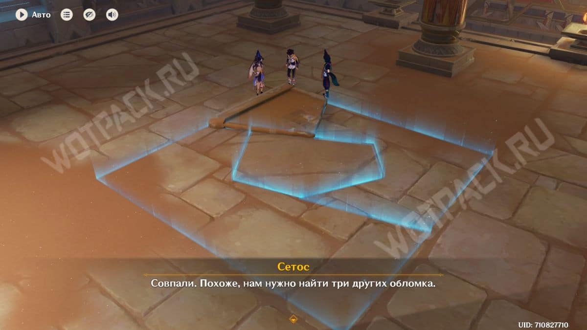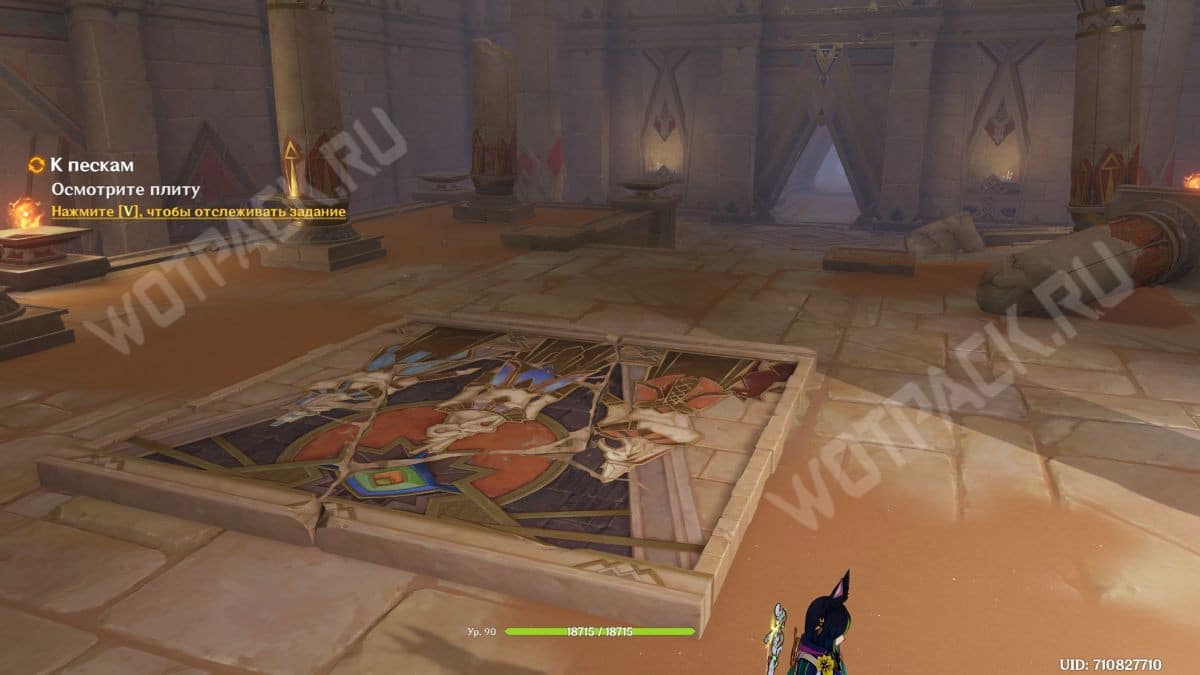 Чтобы узнать, что скрывается на рисунке, активируйте ветряной поток на Ваювьяситре. Для этого переключитесь на Тигнари или Сетоса для выстрела. Когда песок окажется сметен, осмотрите плиту, на которой изображены Царь ибисов Тот, Царь овец Херишеф и Царь крокодилов Себек.