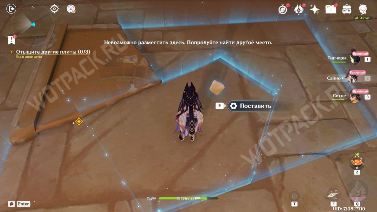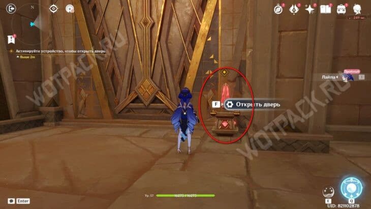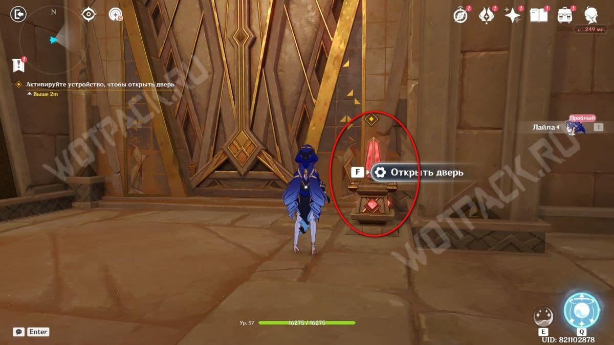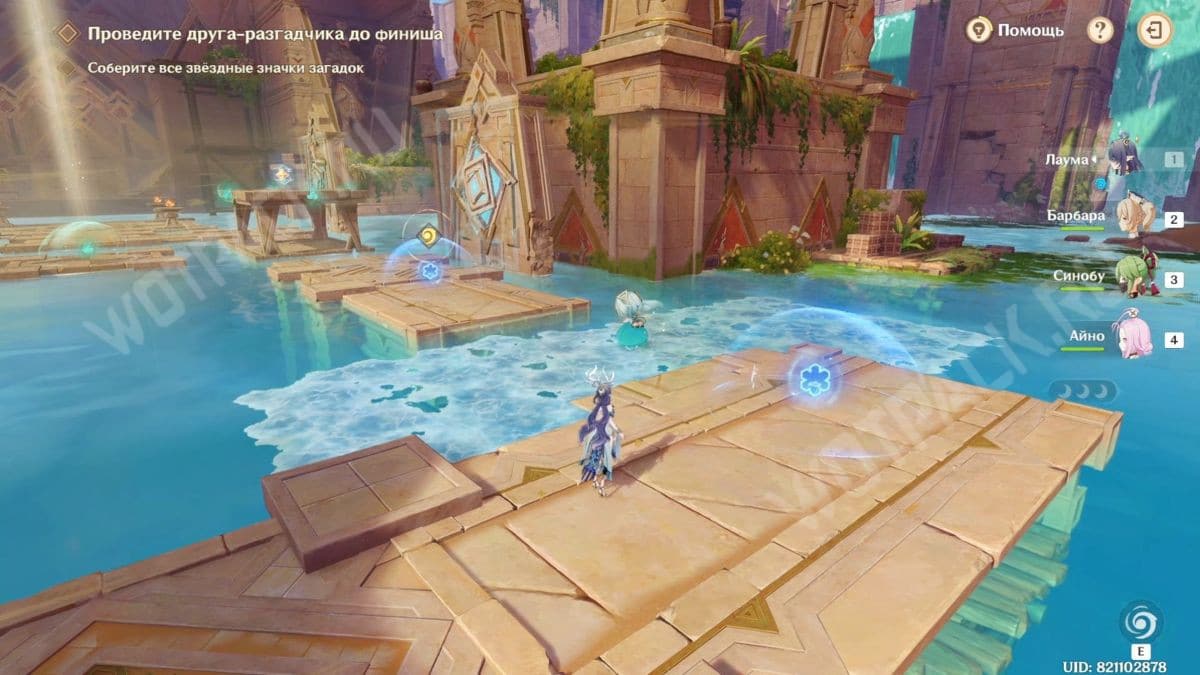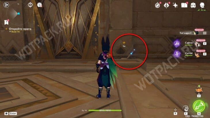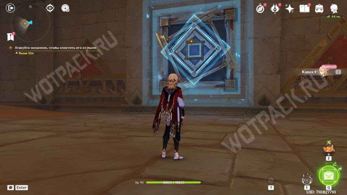 В следующей комнате окажется три закрытых двери, из-за чего придется разделиться. С группой Тигнари выберите правую дверь и откройте врата, потянув за рычаг. В следующем помещении потребуется дополнить мозаику.