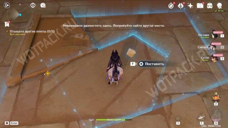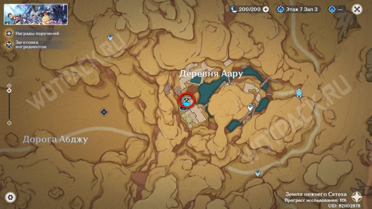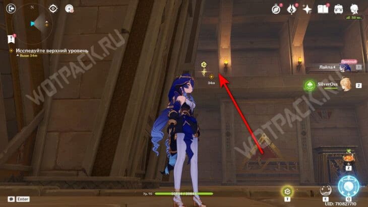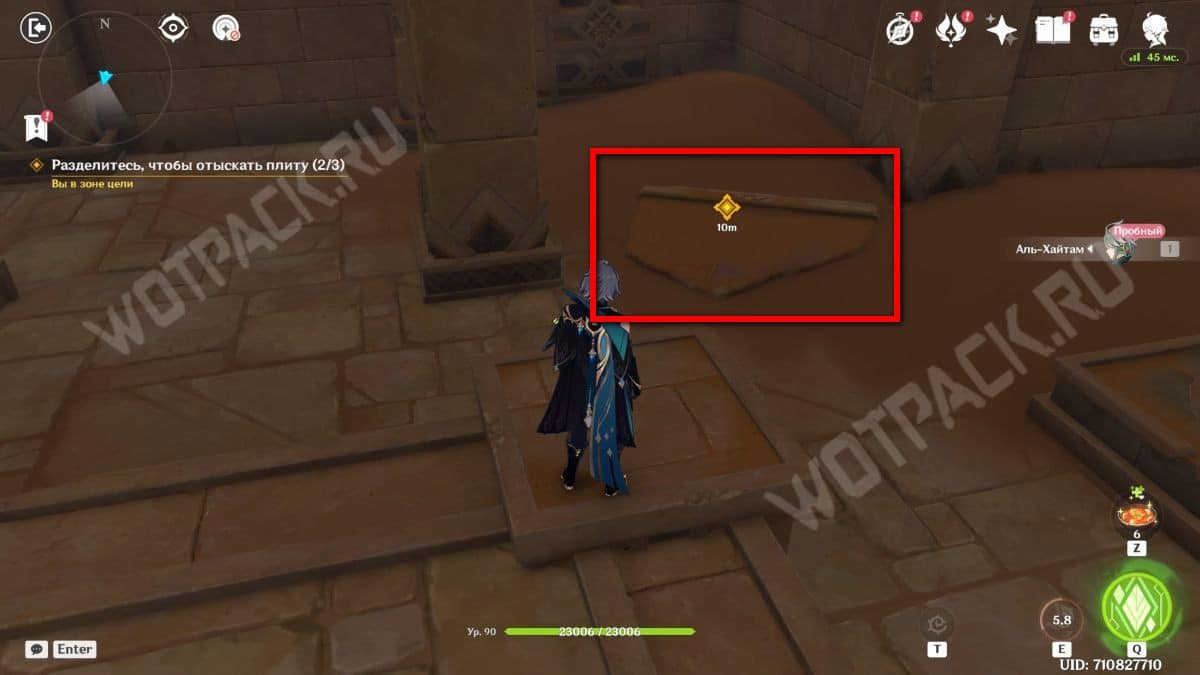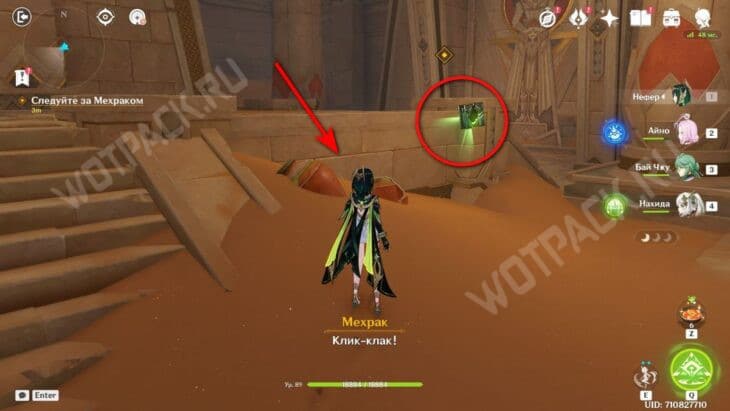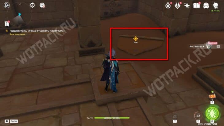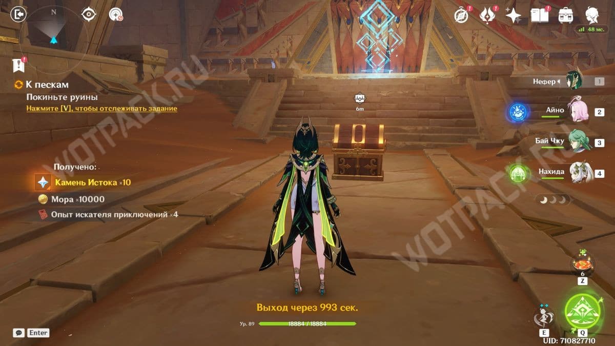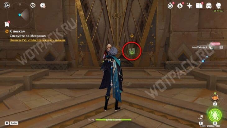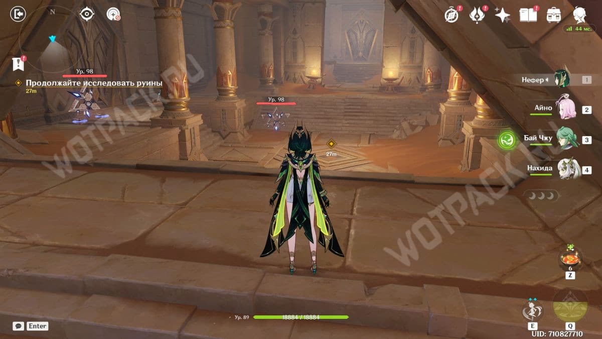 Перемотайте время и отправляйтесь на северо-запад пустыни Колоннад, где ожидают спутники. Немного позже к группе присоединятся Кавех и аль-Хайтам, после чего можно отправляться в дорогу. Углубитесь в неизведанные руины, взаимодействуя со светящейся меткой внутри огороженной забором области, что позволит попасть внутрь древних развалин.