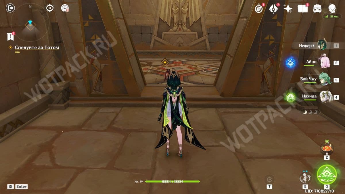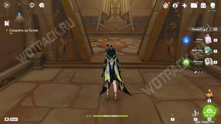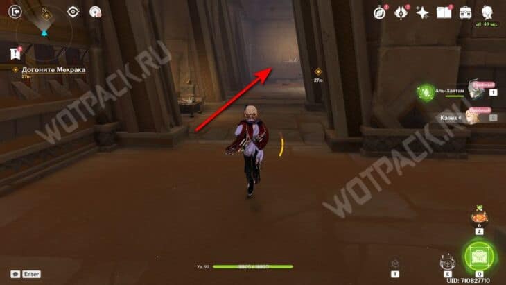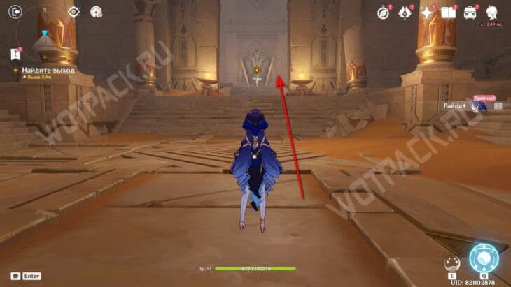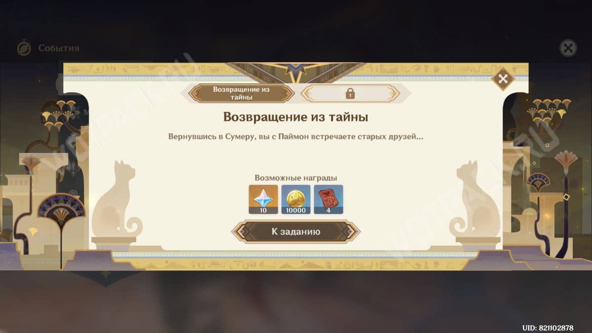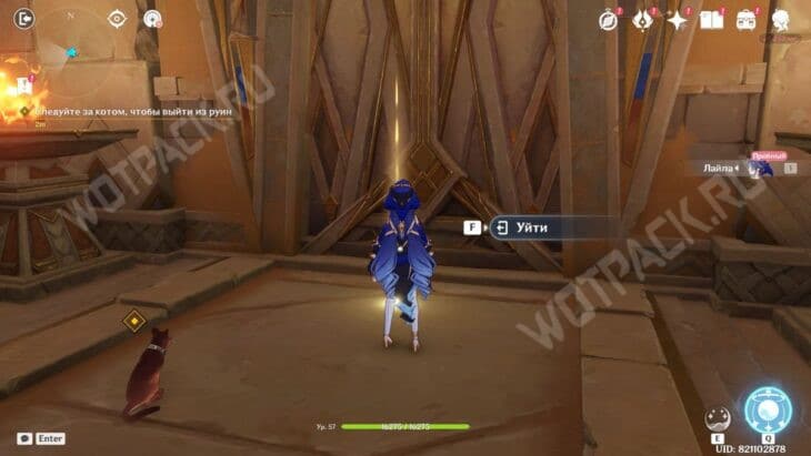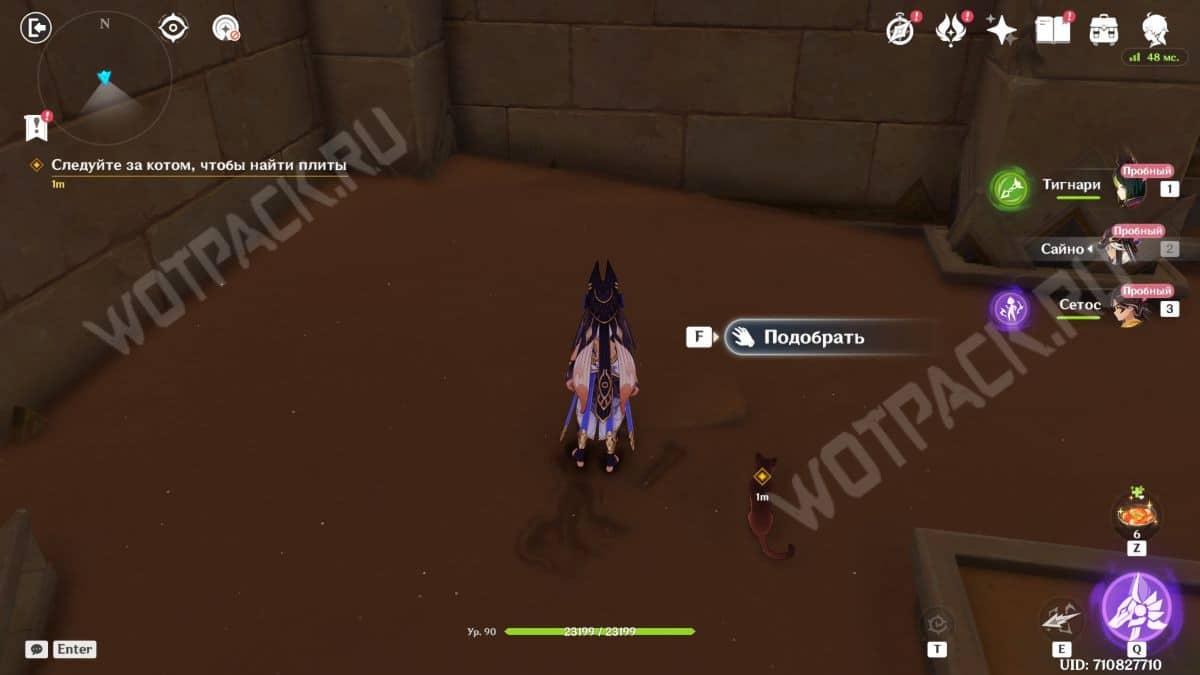 Как только мысли придут в порядок, впереди появится кот, готовый вывести девушку из храма. Следуйте за животным, отмеченным меткой, и покиньте помещение. Разговор с другой личностью студентки завершится появлением Кавеха и аль-Хайтама, которые предложат свою помощь.