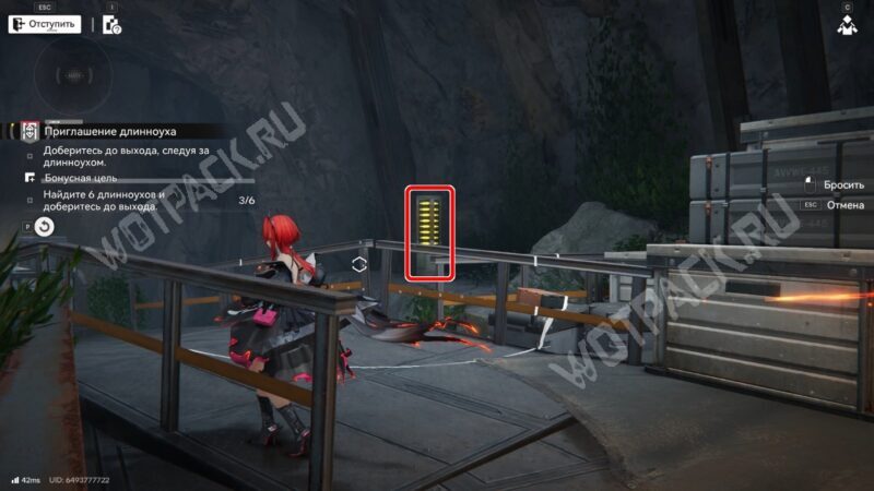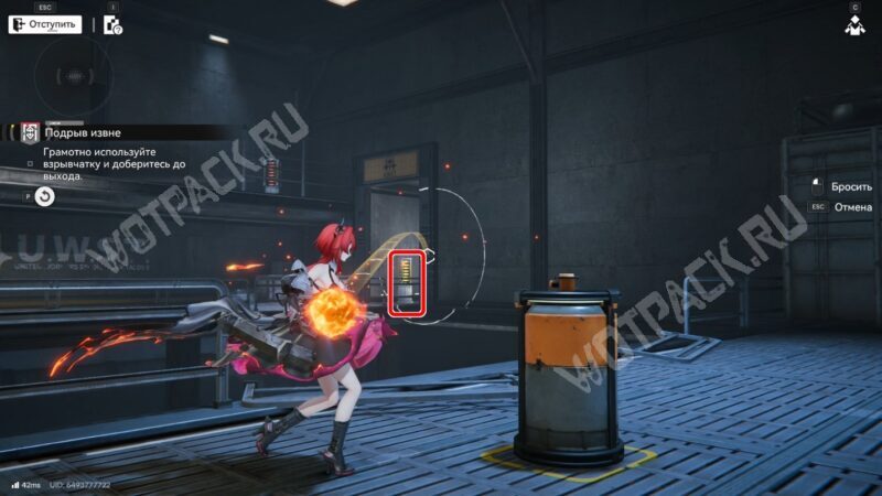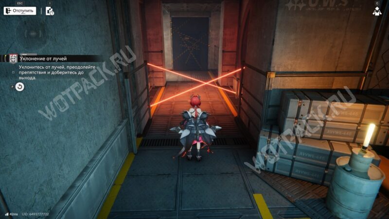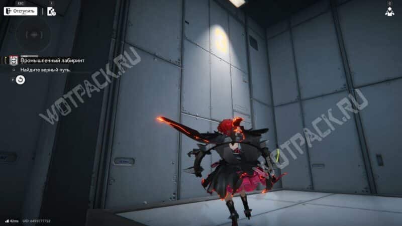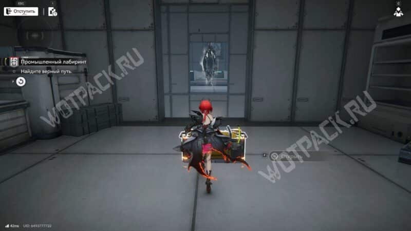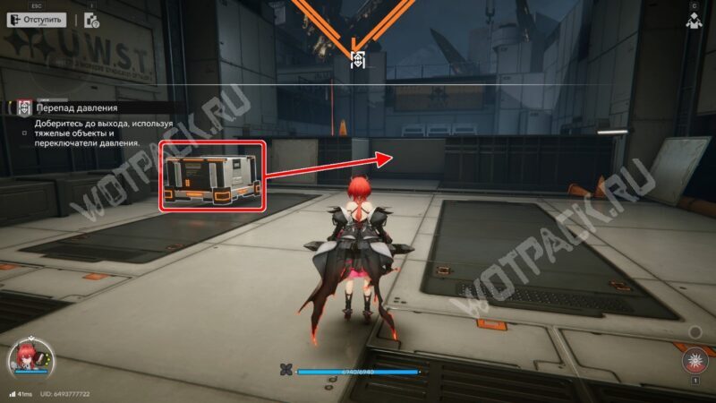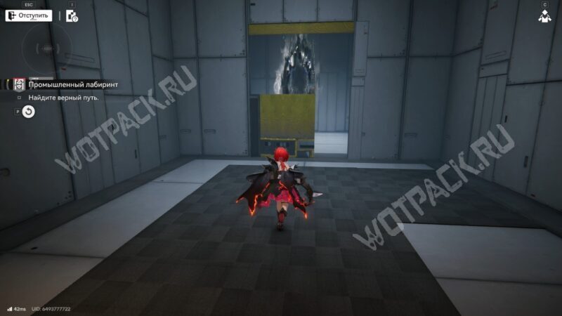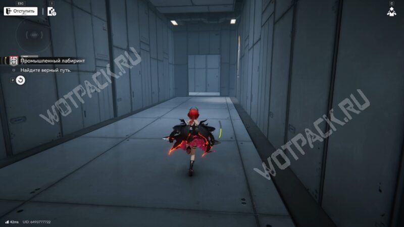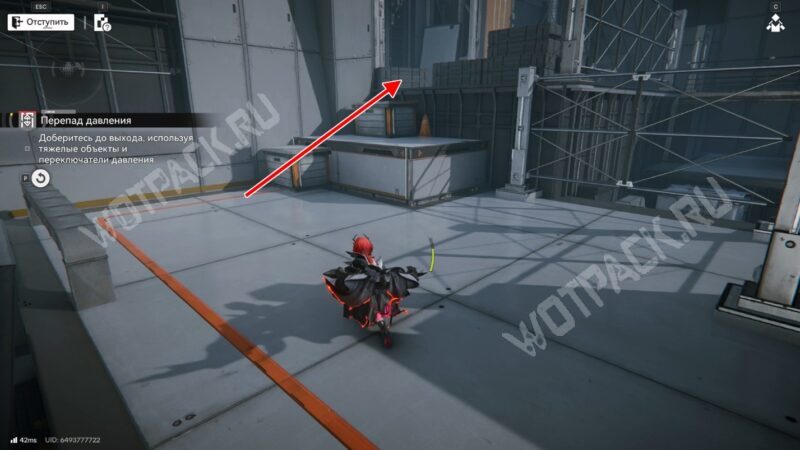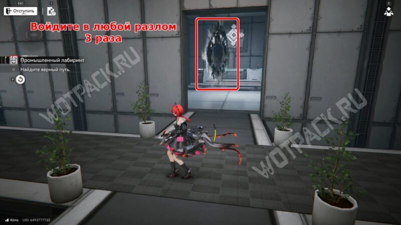 После перехода в следующую комнату поверните направо и бегите по красной линии до конца. Используйте устройство, чтобы открыть проход в предыдущее помещение.