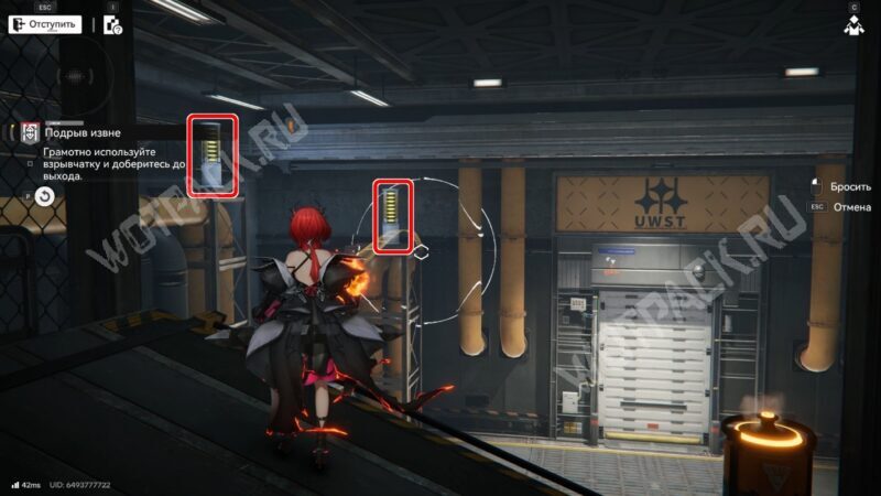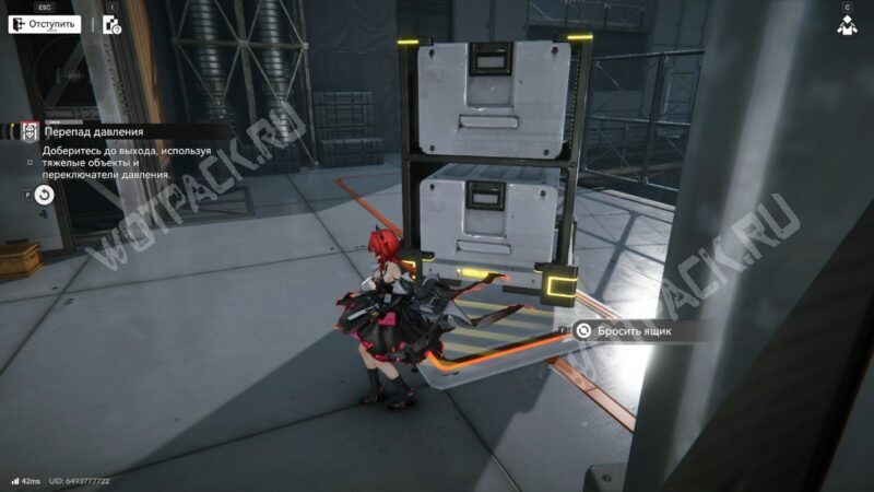 Спуститесь и ведите контейнер к большим воротам с надписью «U.W.S.T». Поставьте ящик напротив и сможете запрыгнуть на возвышенность слева.