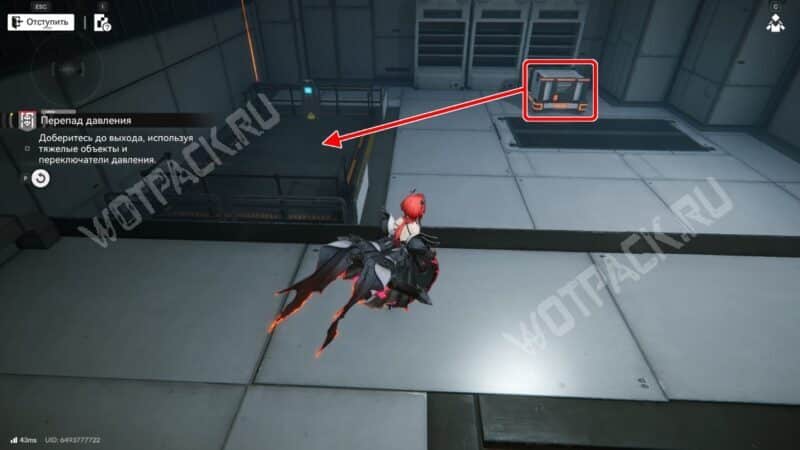 В следующем помещении возьмите высокий объект и тащите его по красной линии до переключателя давления.