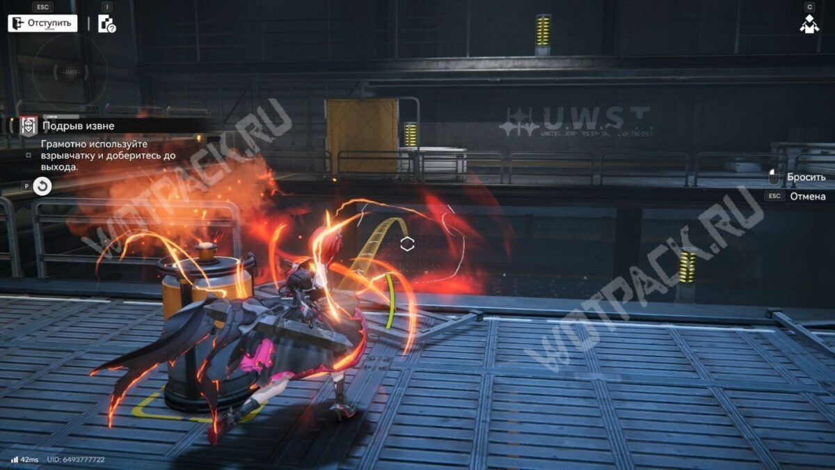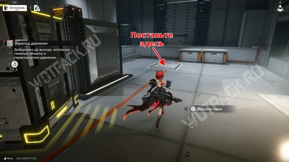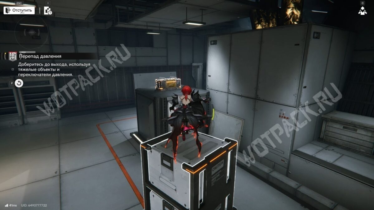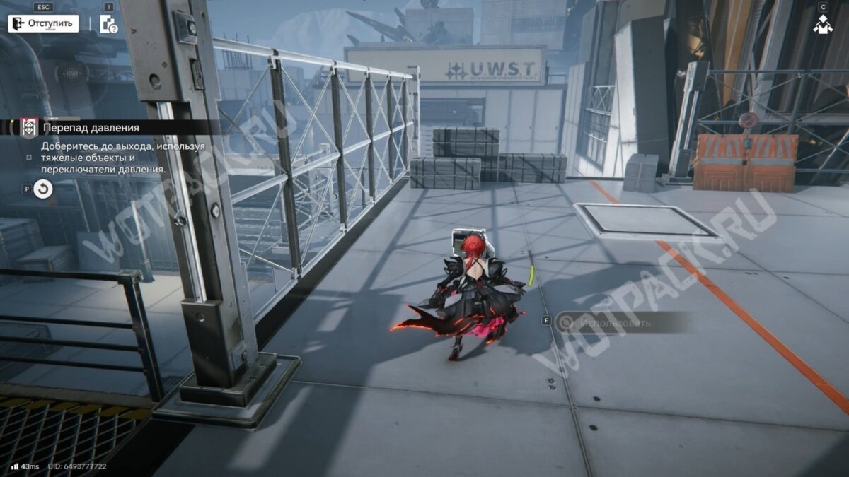 Спуститесь и ведите контейнер к большим воротам с надписью «U.W.S.T». Поставьте ящик напротив и сможете запрыгнуть на возвышенность слева.