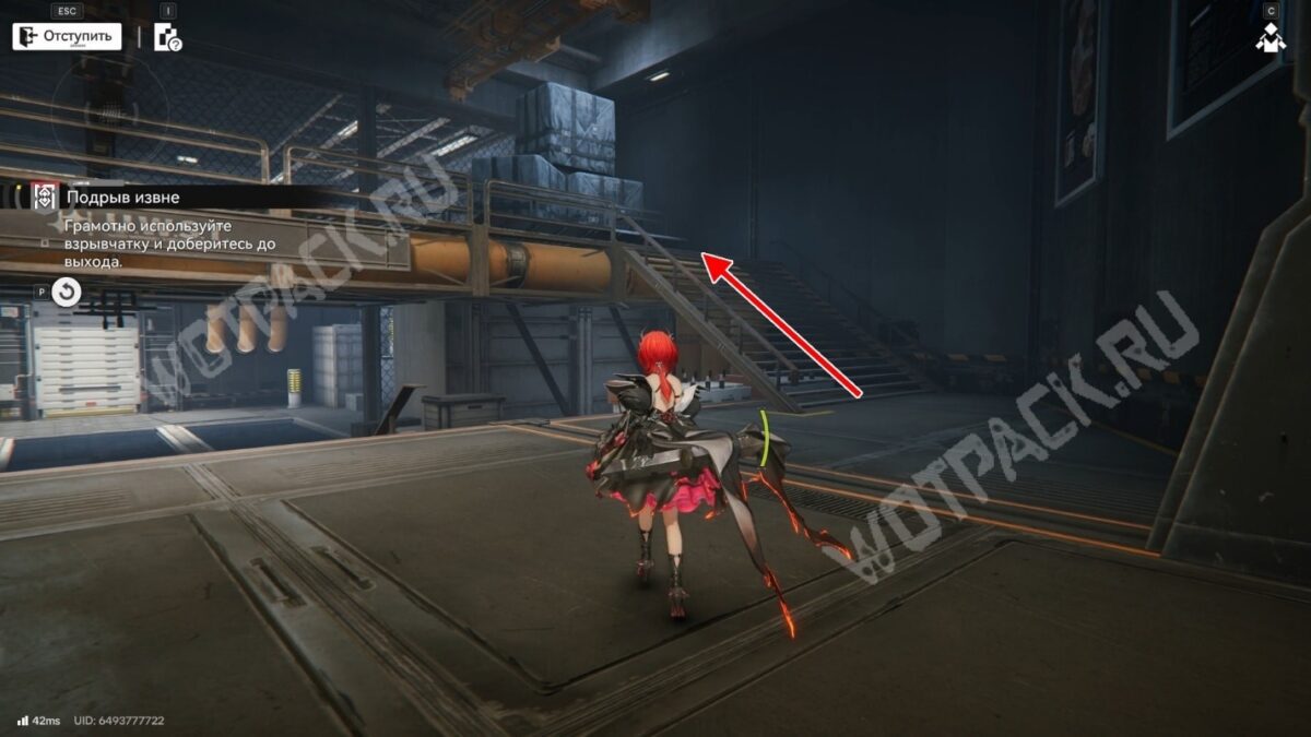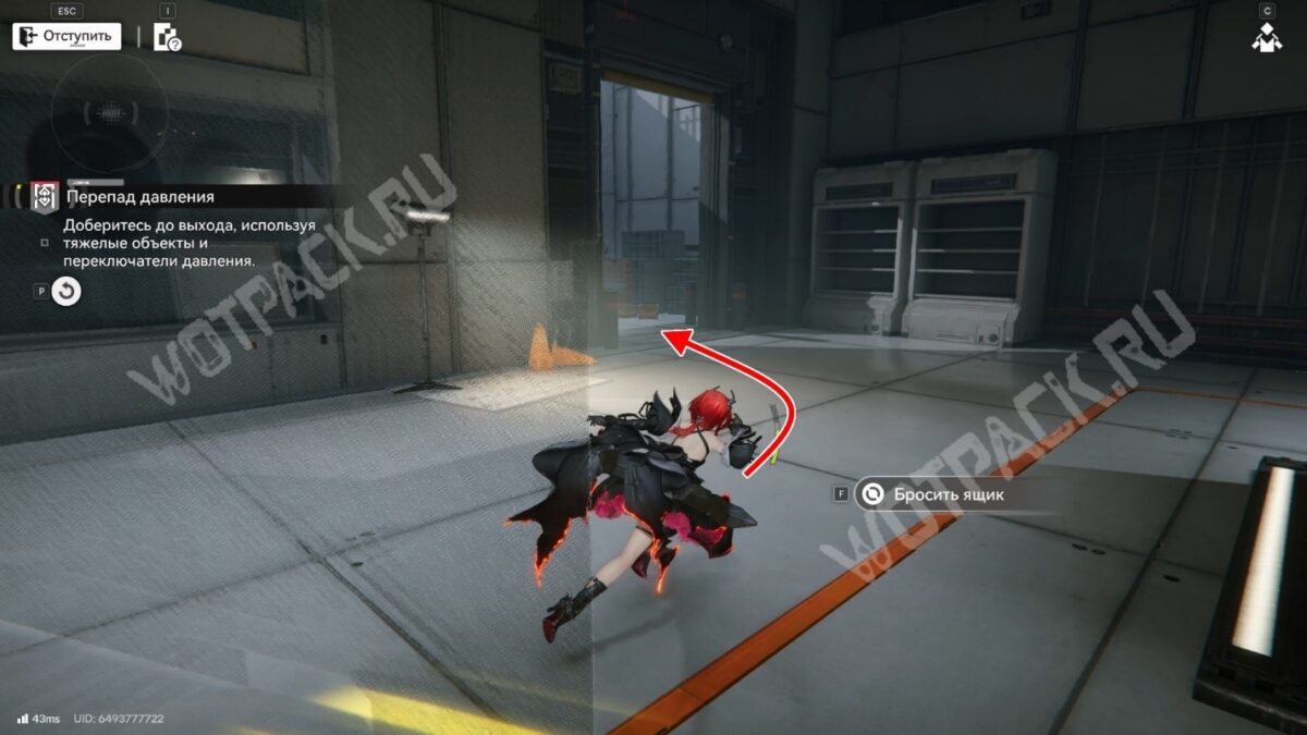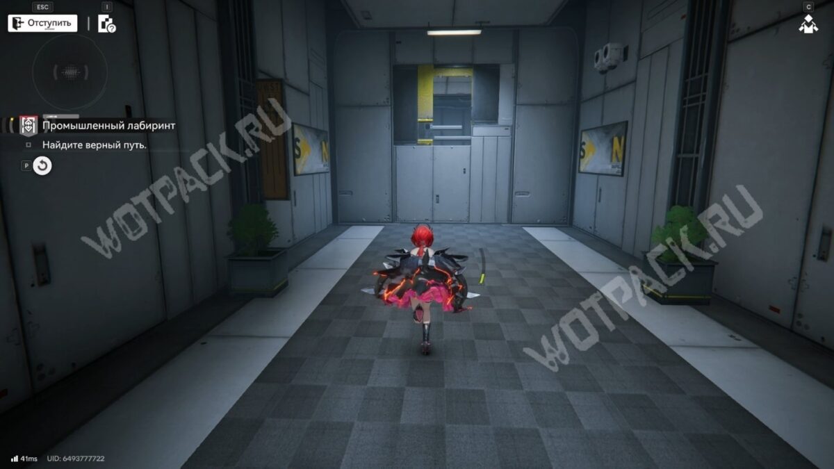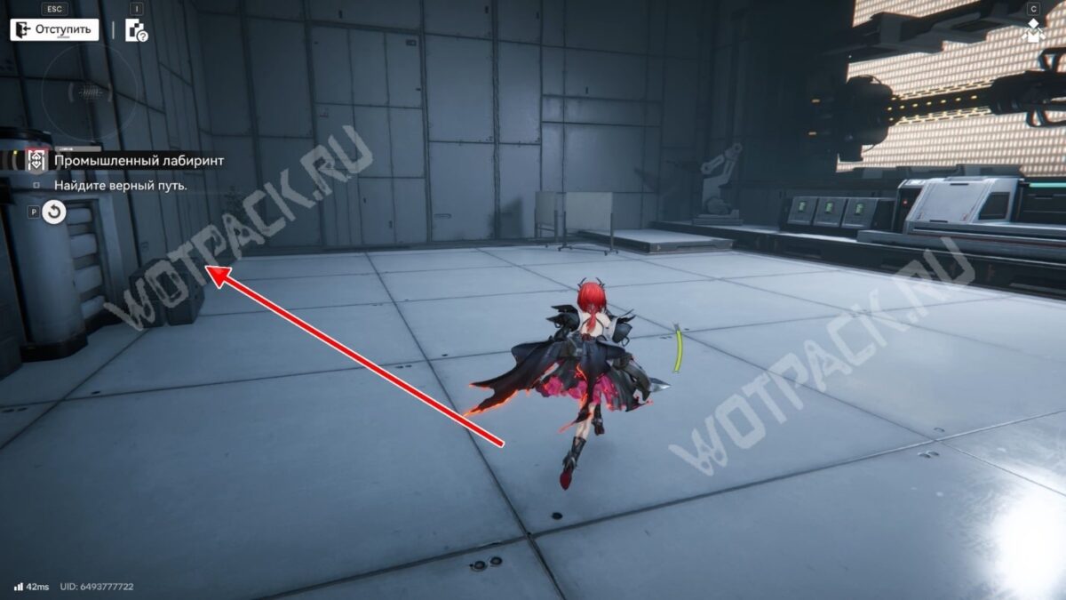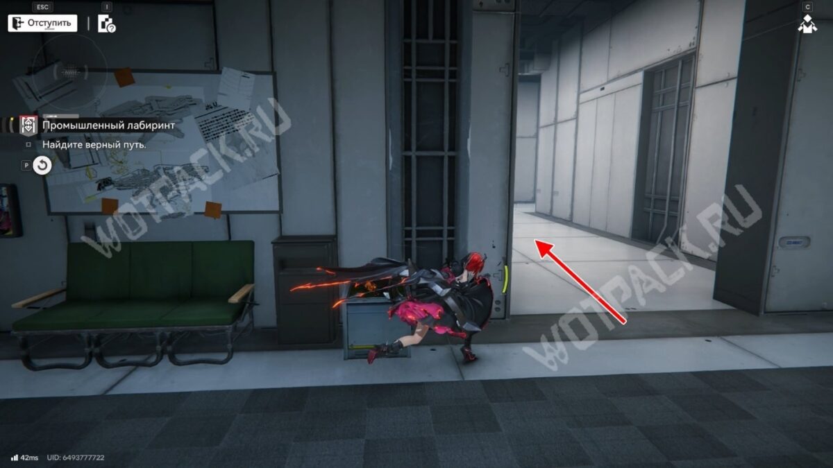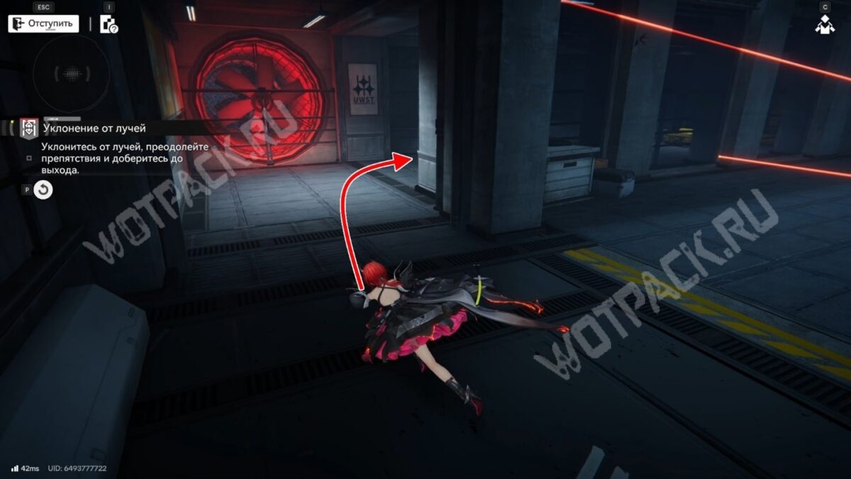 После перехода в следующую комнату поверните направо и бегите по красной линии до конца. Используйте устройство, чтобы открыть проход в предыдущее помещение.