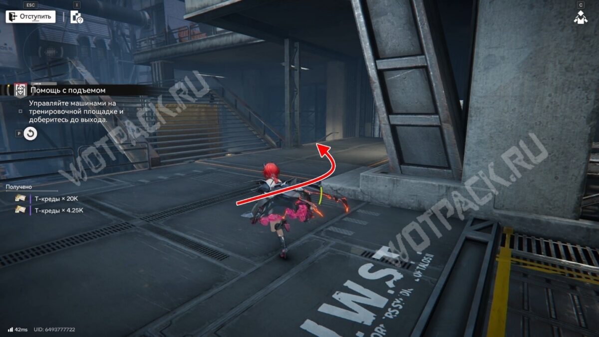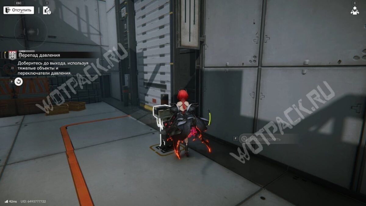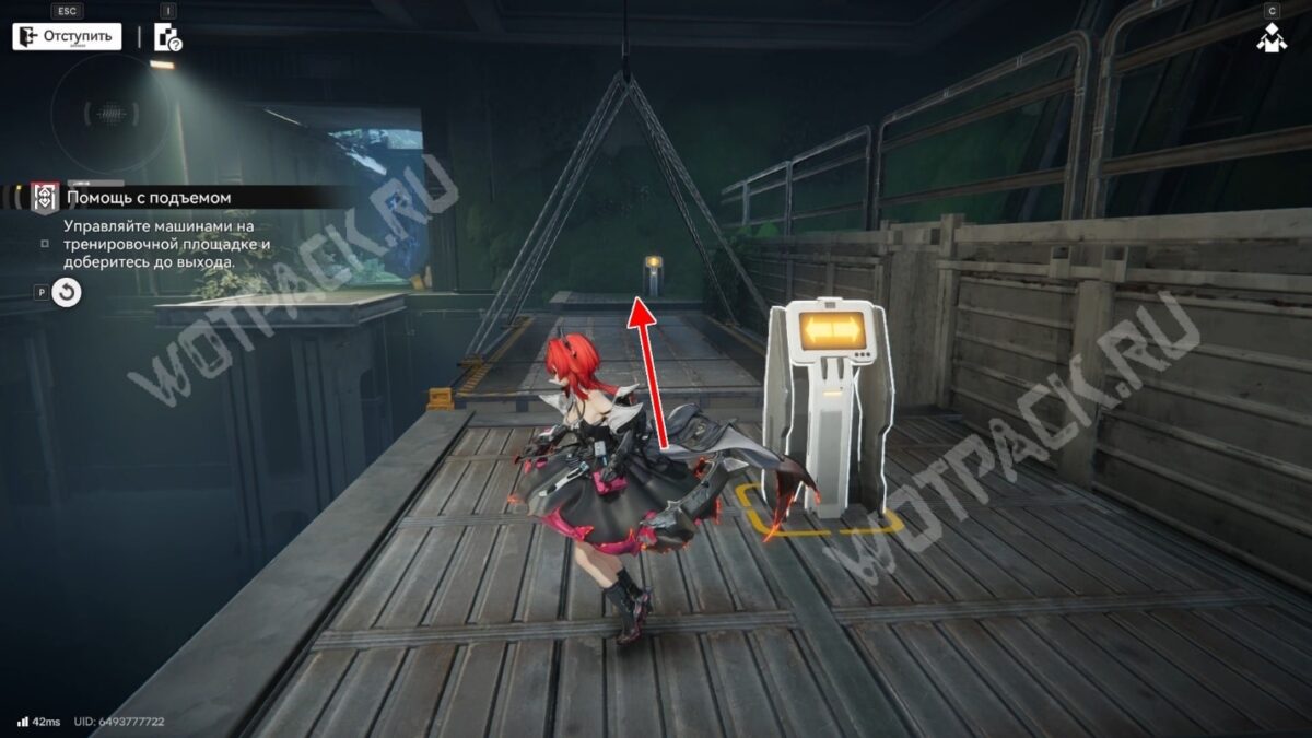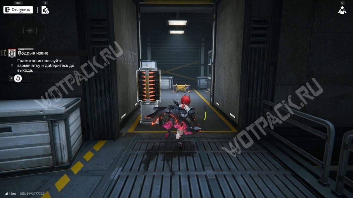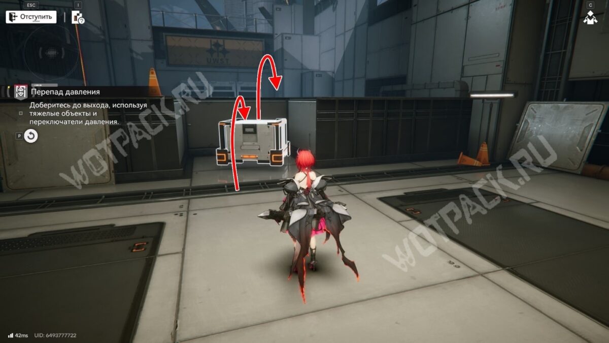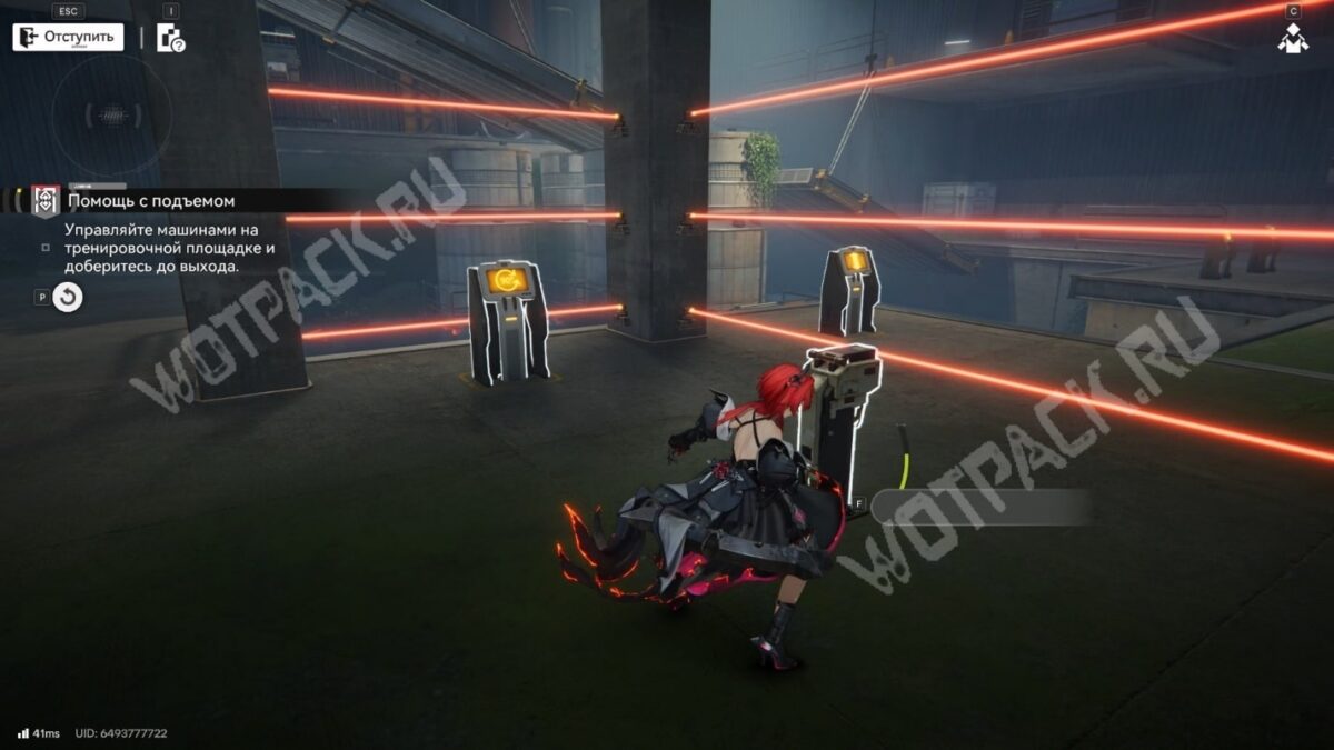 После перехода в следующую комнату поверните направо и бегите по красной линии до конца. Используйте устройство, чтобы открыть проход в предыдущее помещение.