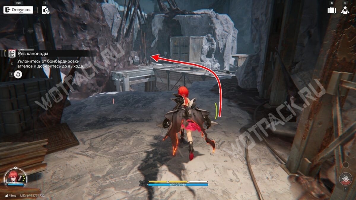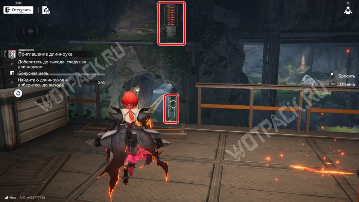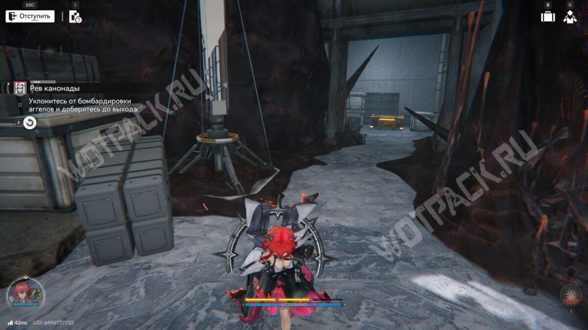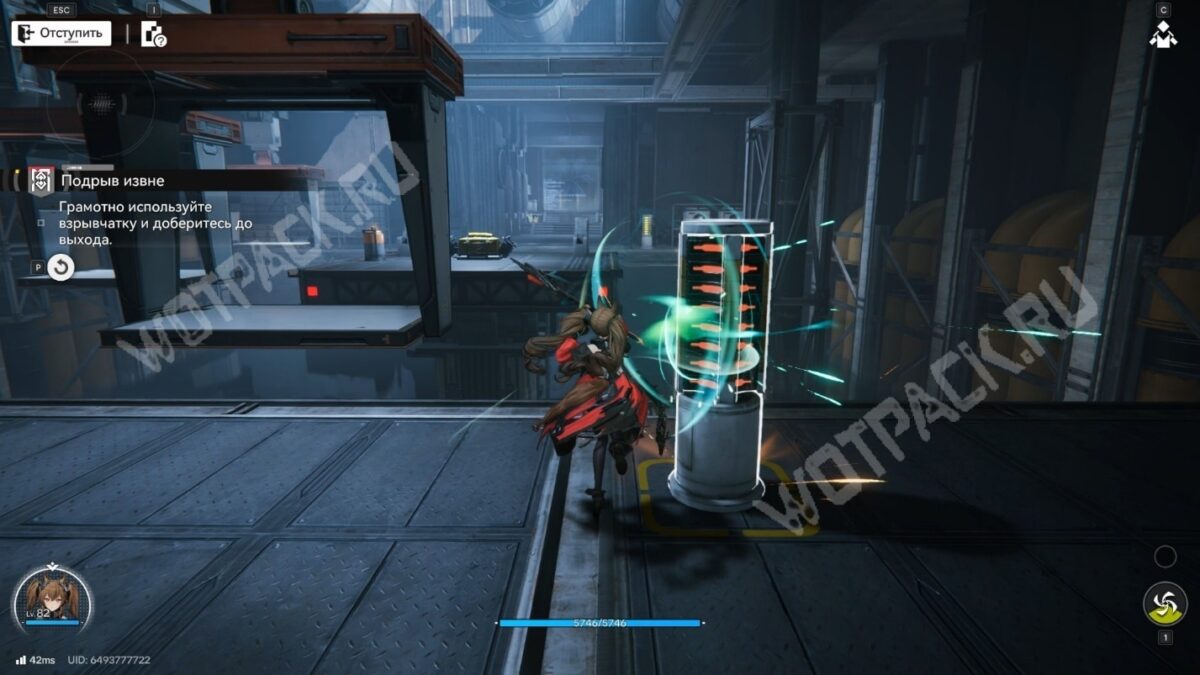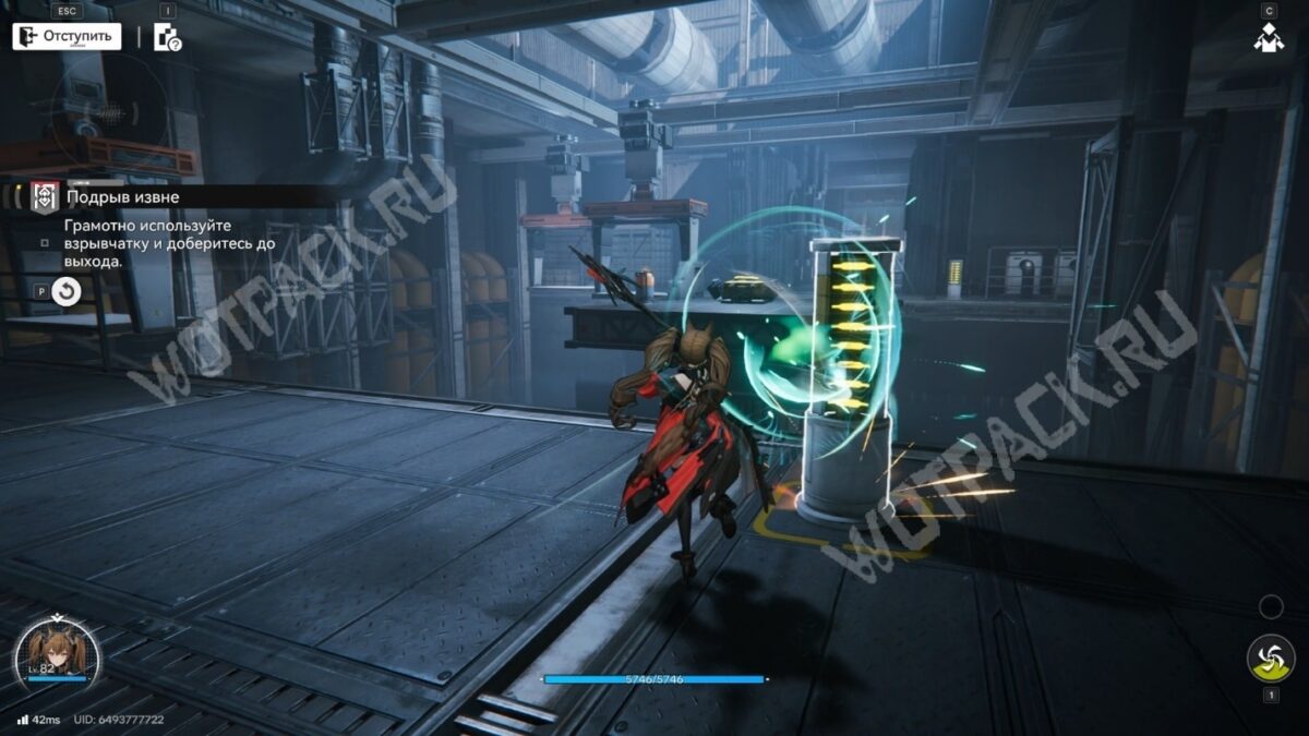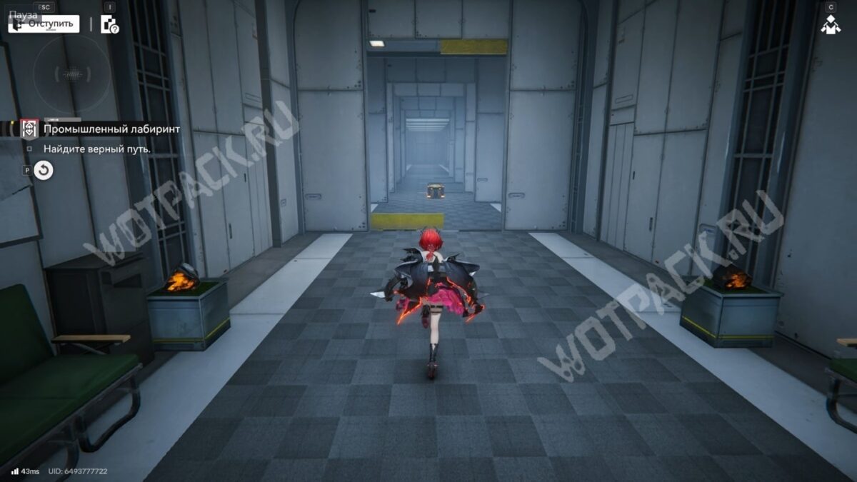 После перехода в следующую комнату поверните направо и бегите по красной линии до конца. Используйте устройство, чтобы открыть проход в предыдущее помещение.
