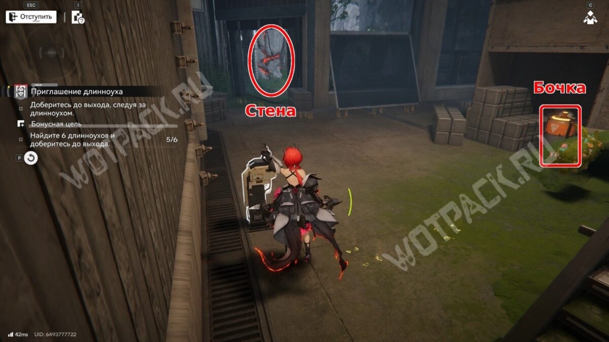 Бегите за оставшимися двумя. Чуть дальше, у разрушаемой стены, ещё один длинноух сменит курс и забежит в трубу. Найдите бочку с промышленной взрывчаткой поблизости и взорвите камни. Второй длинноух отправится в нору — 2/6.