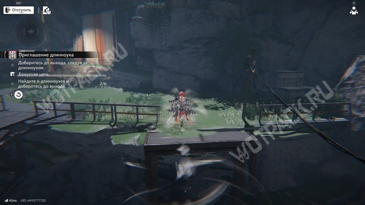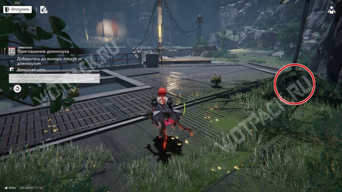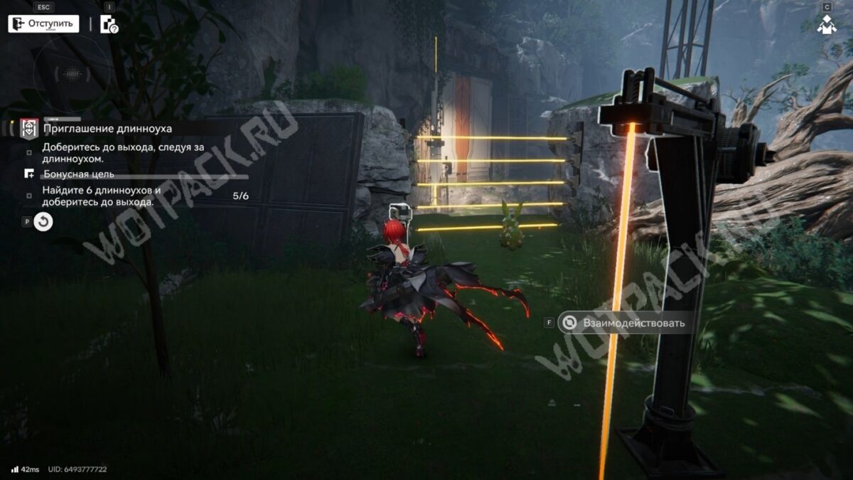 За преградой найдёте трос. Поднимитесь по нему и догоните зайца. Используйте устройство, чтобы открыть энергетические ворота и следуйте за существом до конца.