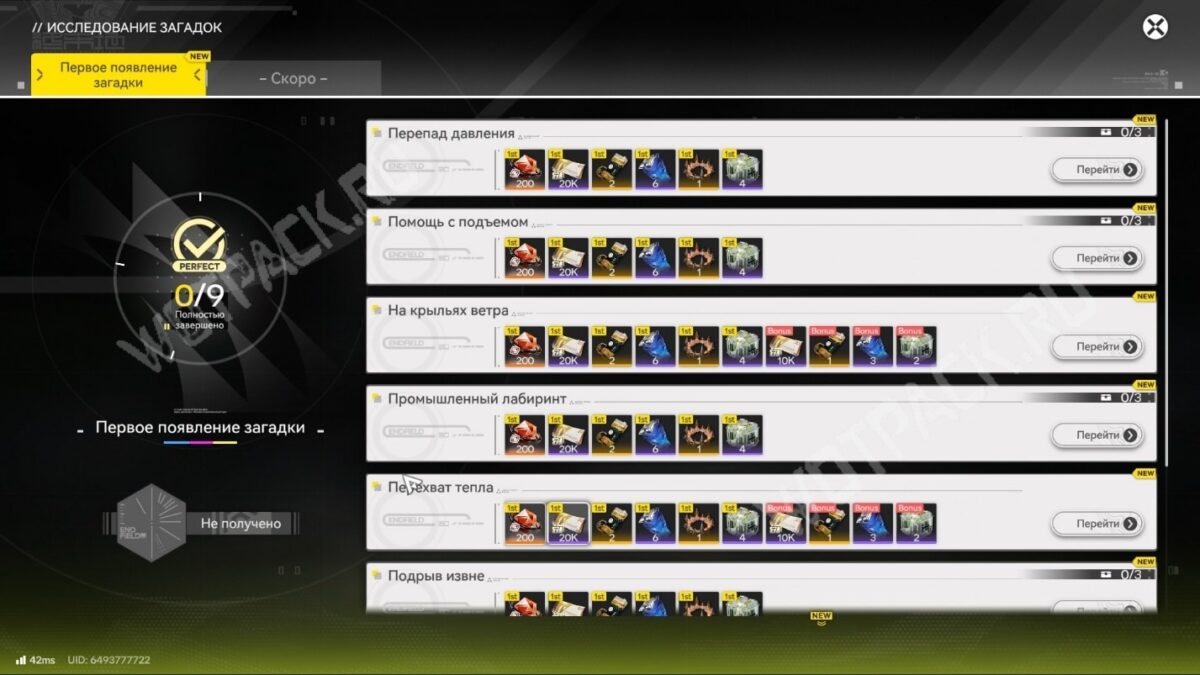 За прохождение девяти испытаний «Исследование загадок» из цикла «Первое появление загадки» можно забрать следующие награды в Аркнайтс Эндфилд: