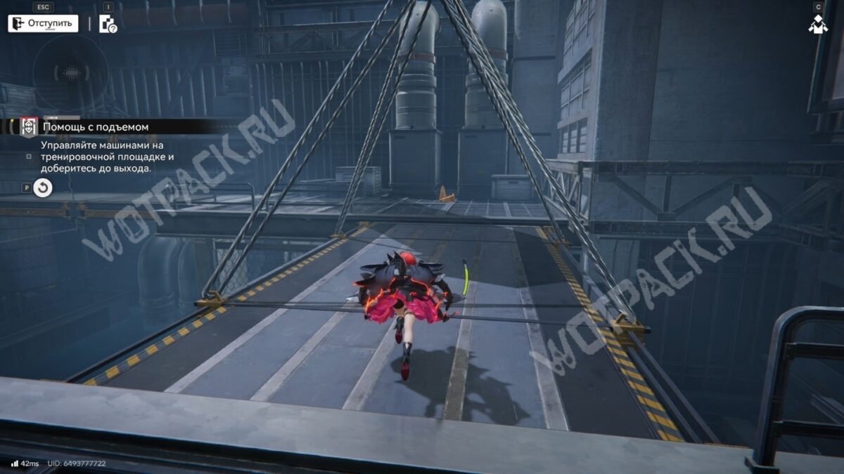 Вновь подпрыгните на батуте, чтобы попасть ещё выше. В конце коридора активируйте ещё один трос.