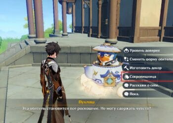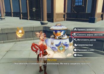 После использования фрукта вновь отправляйтесь к Пухляшу. На этот раз в диалоговом окне выберите вариант “Сменить форму обители”. Так откроется вкладка со всеми доступными в игре стилями обители. Использование Истинного плода природы откроет последний облик в списке — Благоухающий лес.