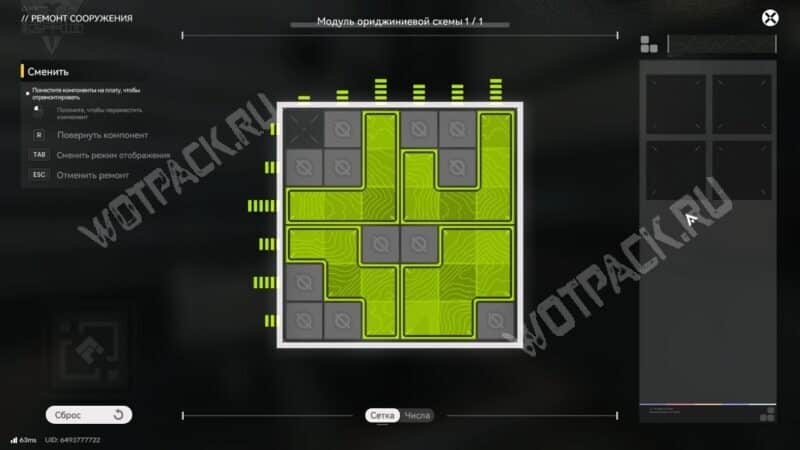 Собрав все компоненты, подойдите к запертым воротам и взаимодействуйте с переключателем. Разместите четыре фигуры на плату под названием «Сменить» так, чтобы не осталось свободных клеток.