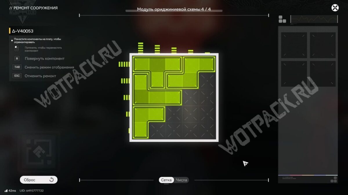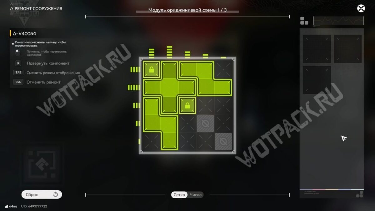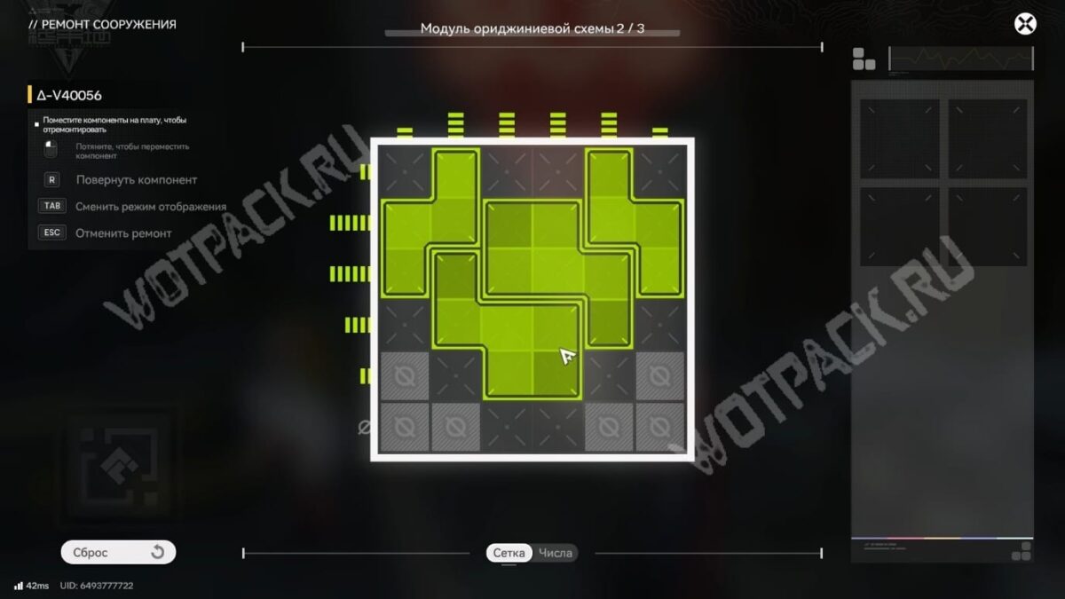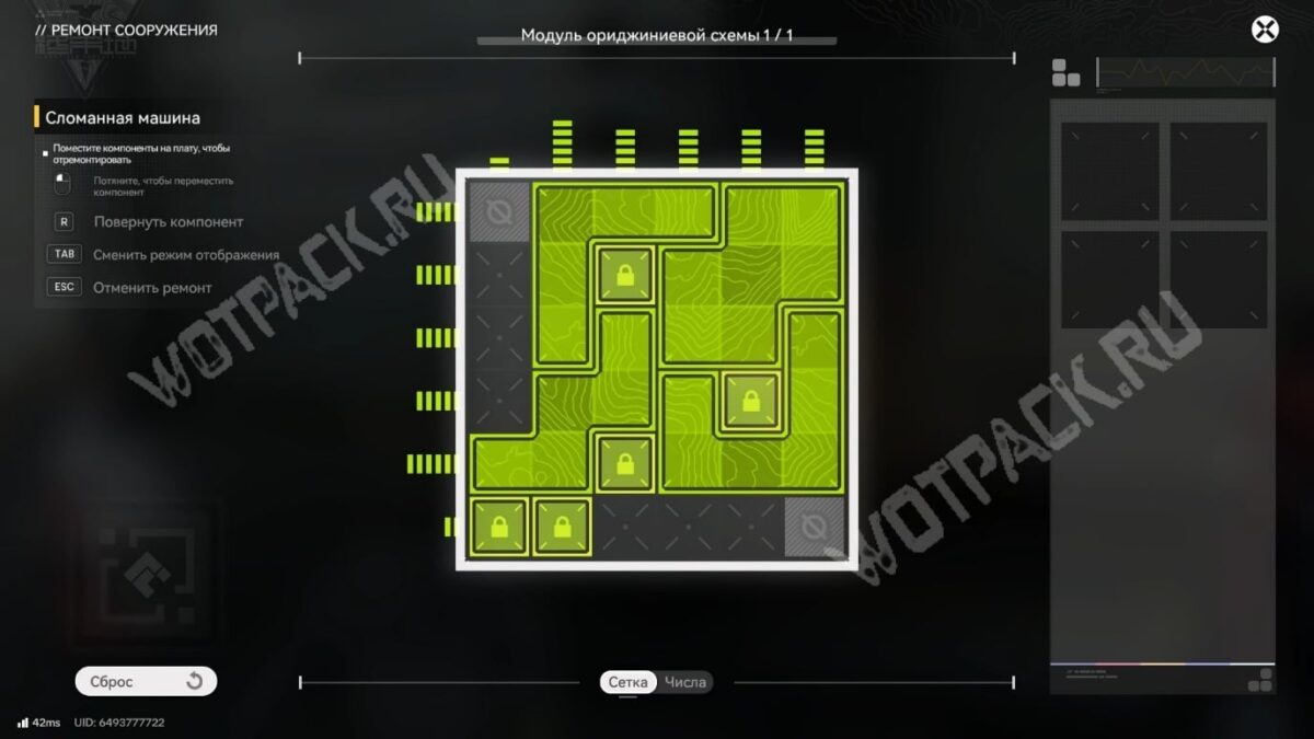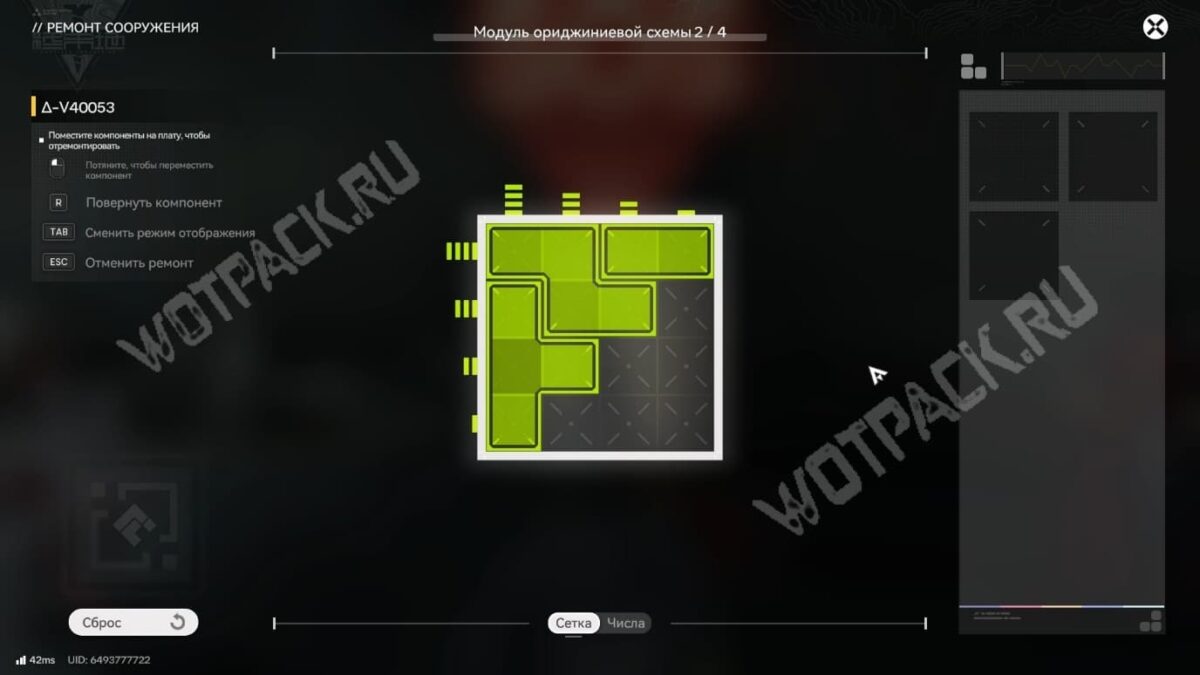 Собрав все компоненты, подойдите к запертым воротам и взаимодействуйте с переключателем. Разместите четыре фигуры на плату под названием «Сменить» так, чтобы не осталось свободных клеток.